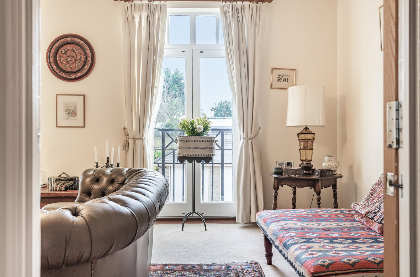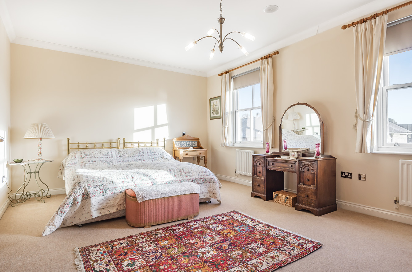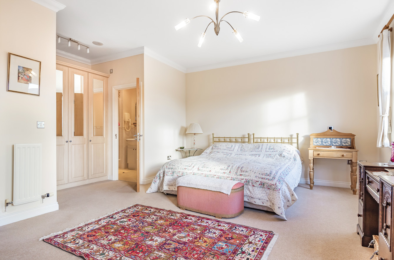 The main lounge is situated on the first floor and has the advantage of high ceilings and two sets of French doors with Juliette balconies allowing the natural to illuminate the room. The guest bedroom is also on this floor and provides built in wardrobes plus the addition of a personal en-suite. Bedroom five is currently utilised as a home office, however, could easily accommodate a single bed.