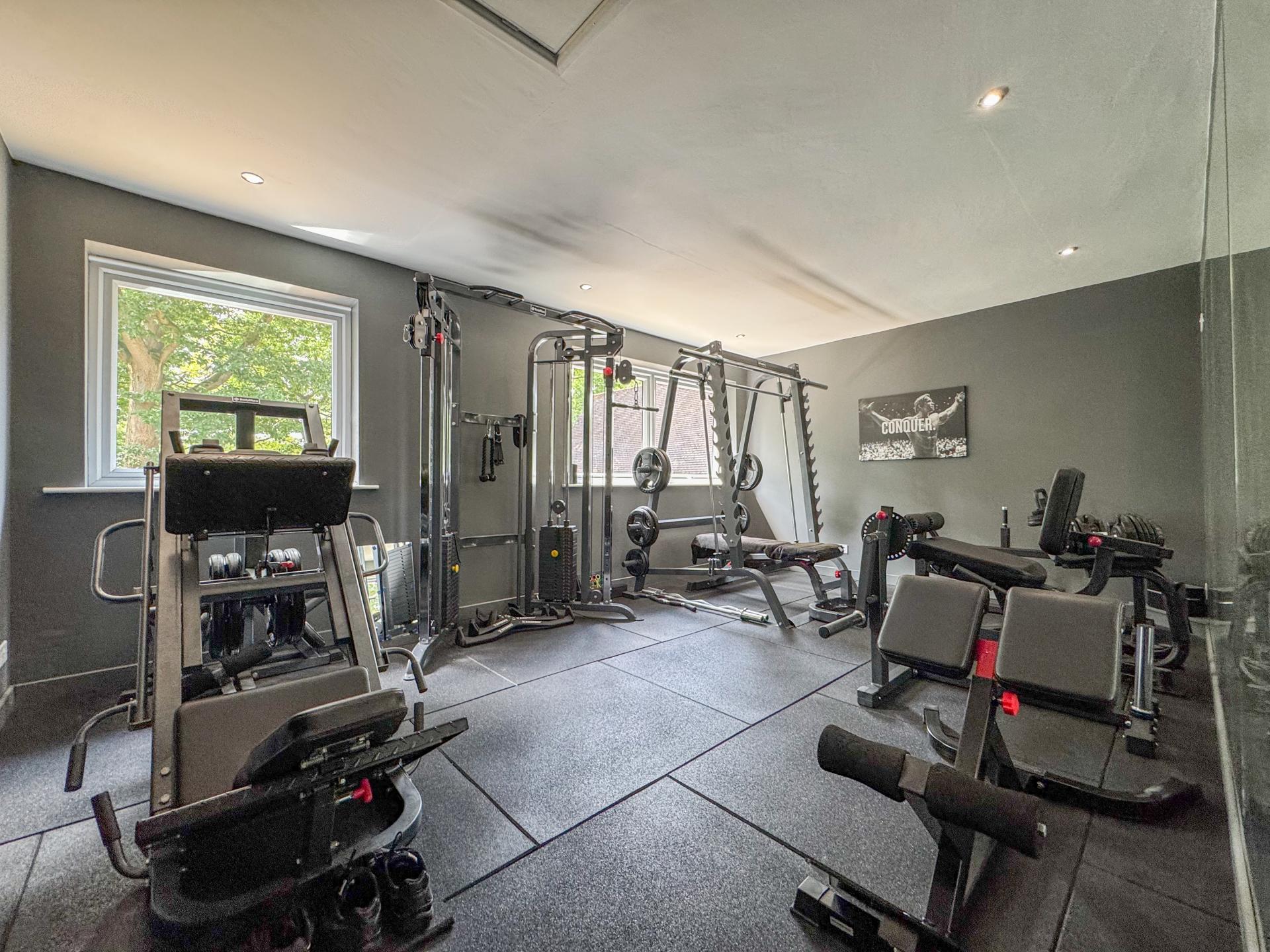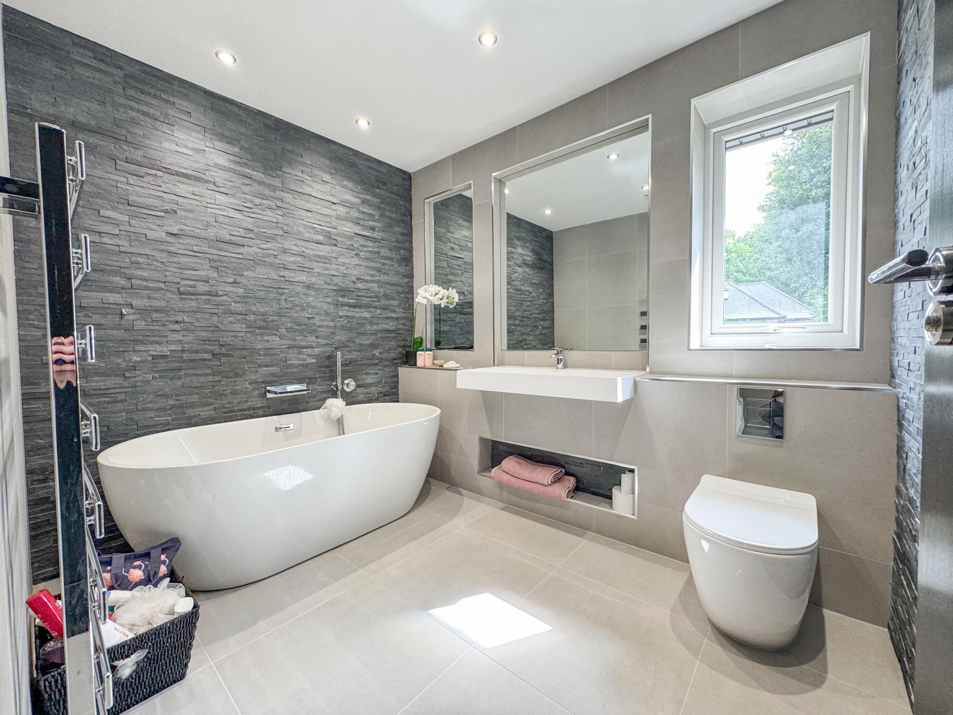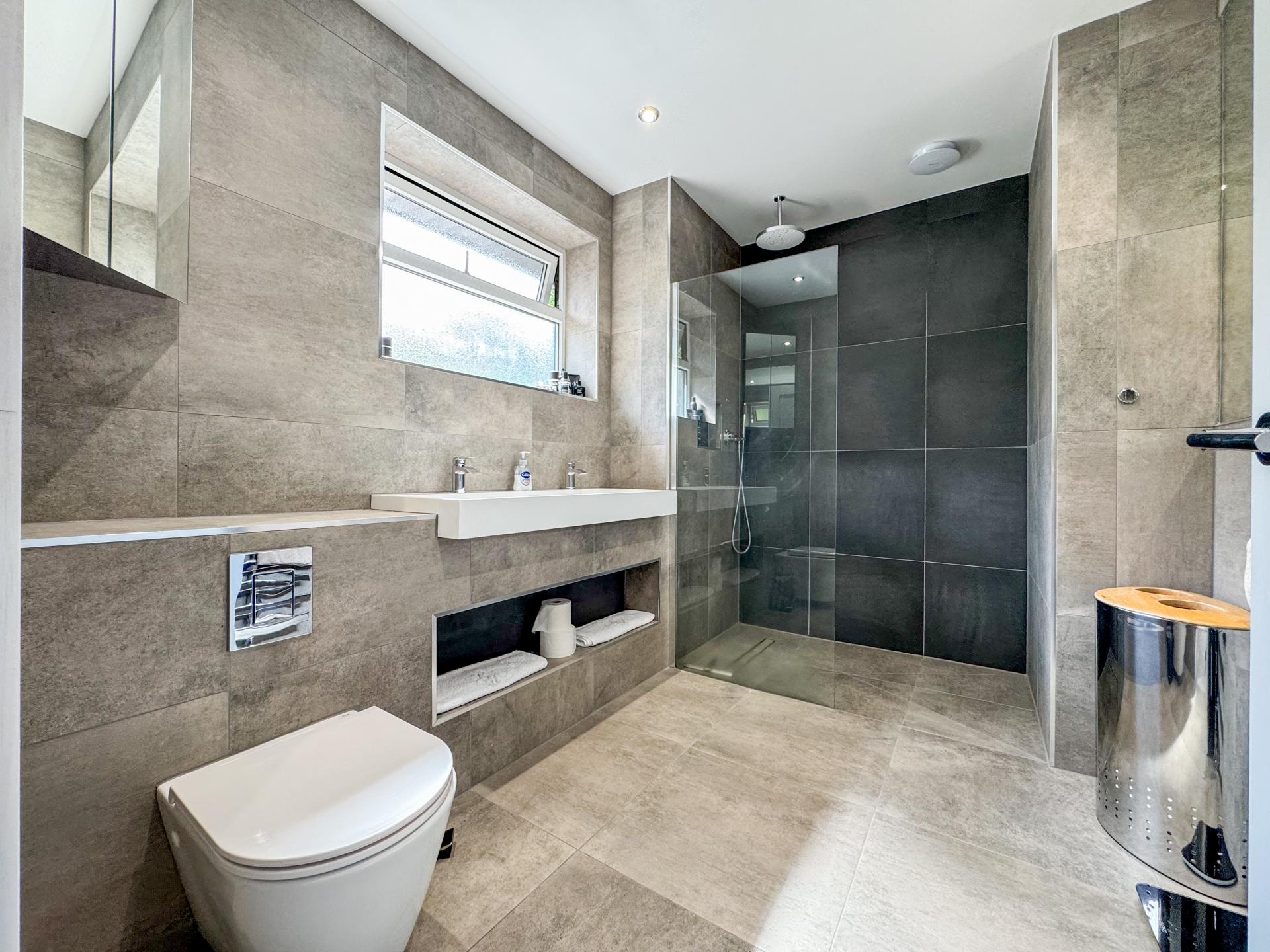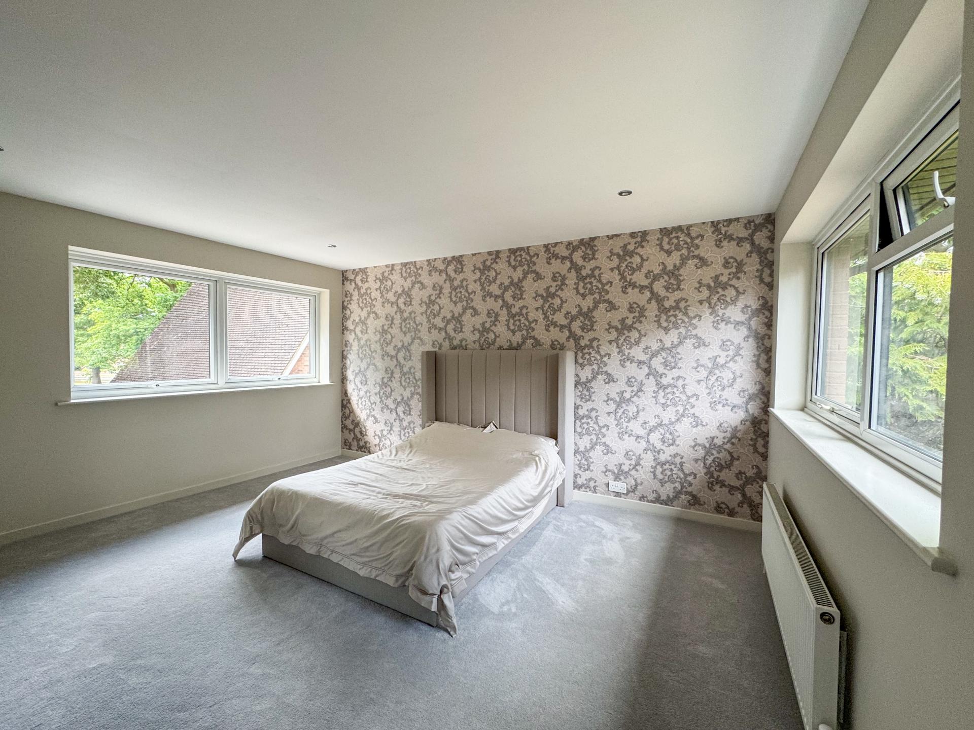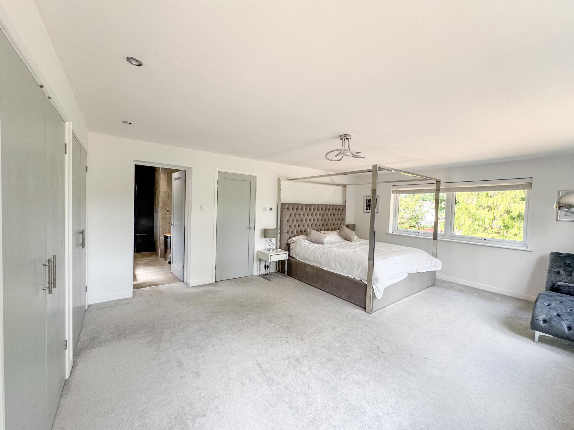 Upstairs, a landing leads to six beautifully sized bedrooms. The main suite impresses with its generous dimensions and air conditioning, complemented by an elegant ensuite complete with underfloor heating. The additional bedrooms vary in size, perfect for family or guest accommodation, while a family bathroom and chic Jack & Jill shower room ensure comfort and luxury.