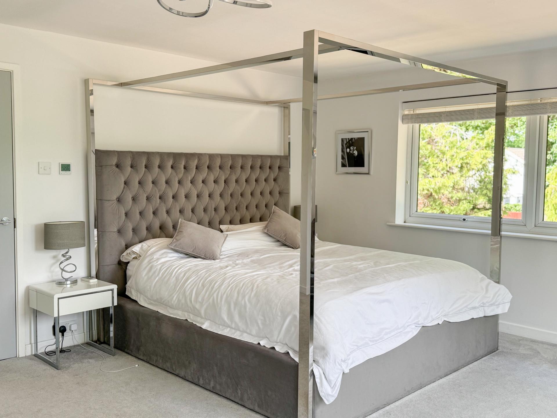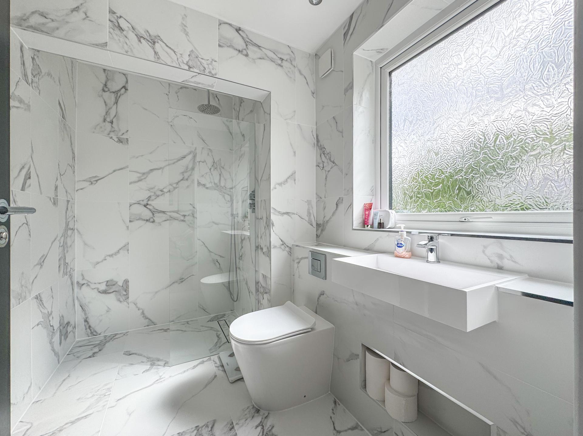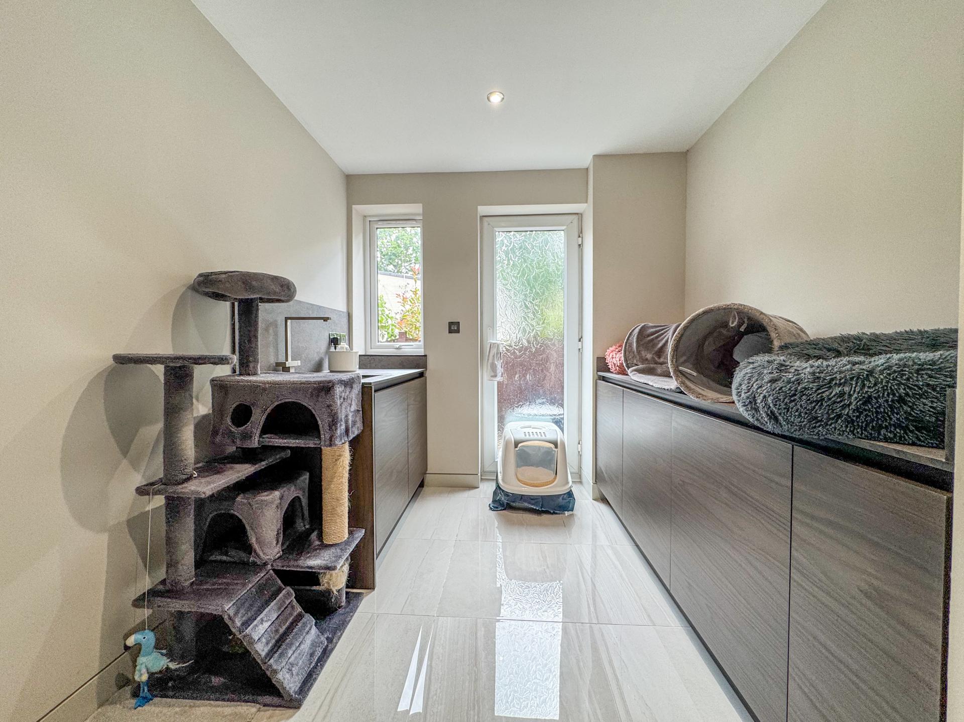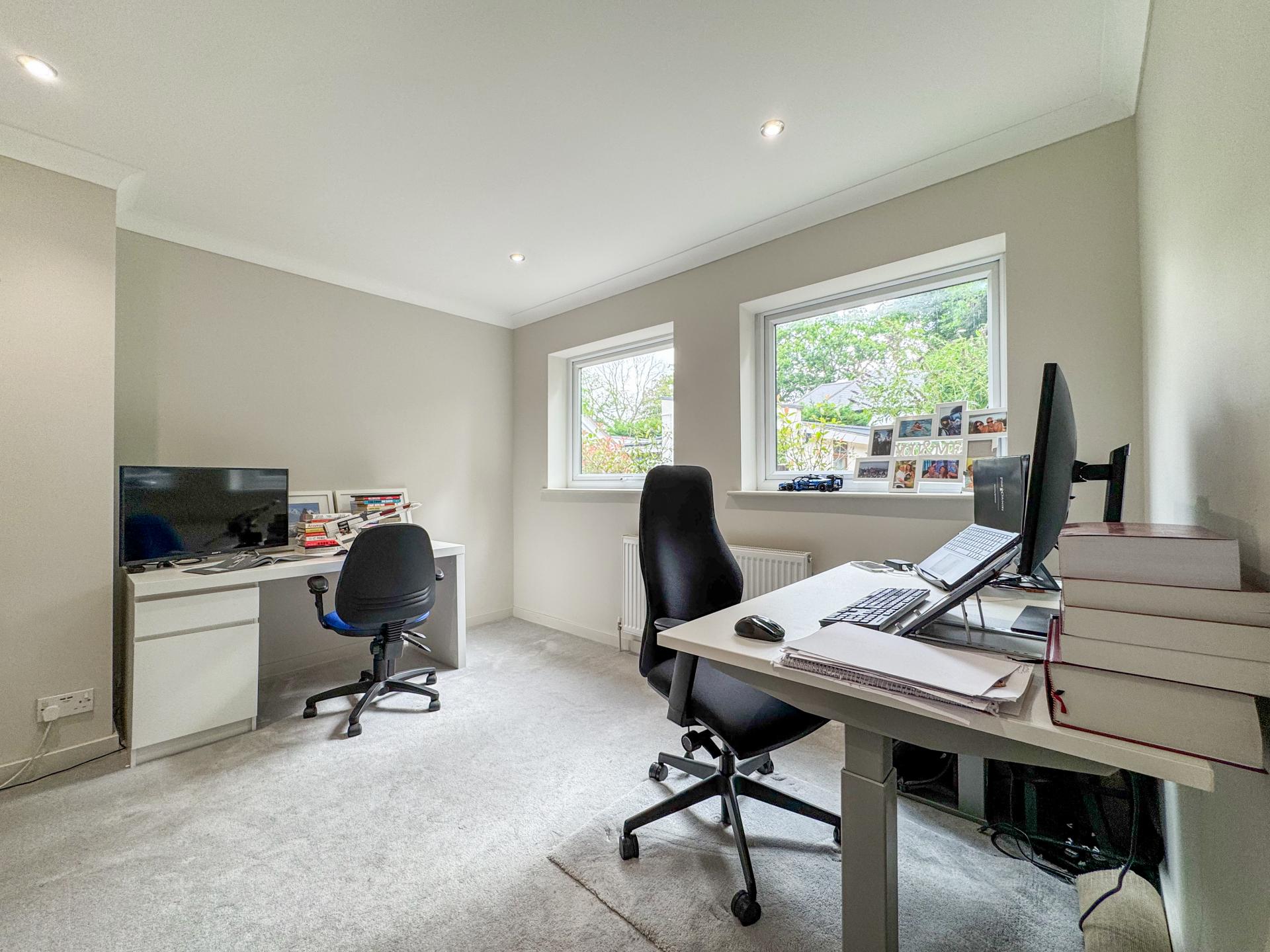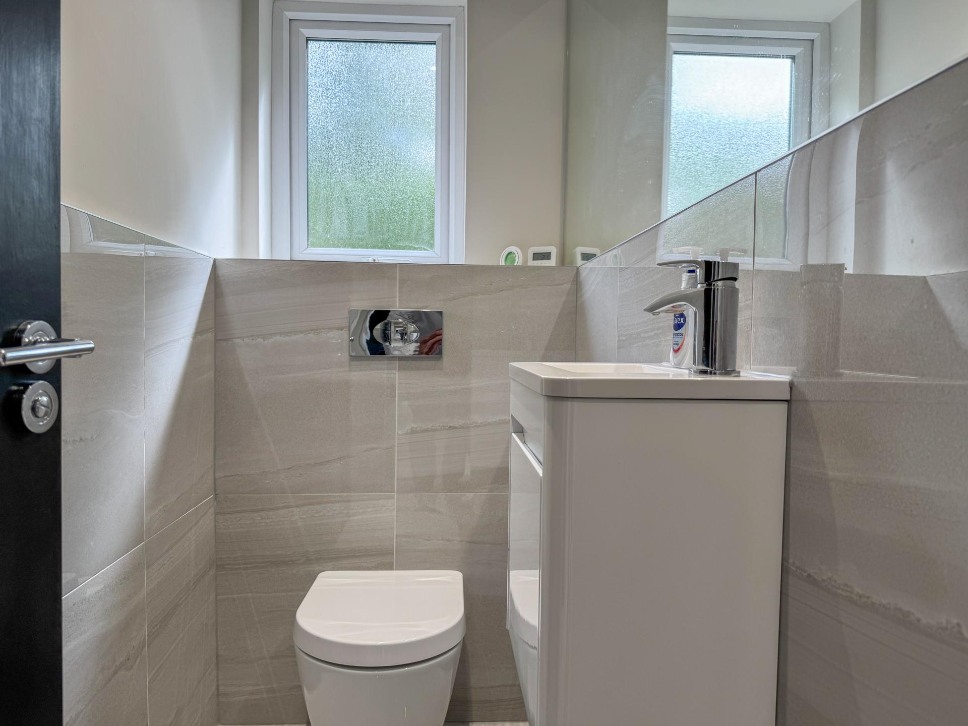 A well-appointed utility room provides essential functionality. There is also a spacious bedroom or study on the ground floor. Completing the downstairs amenities, the cloakroom adds both convenience and style.