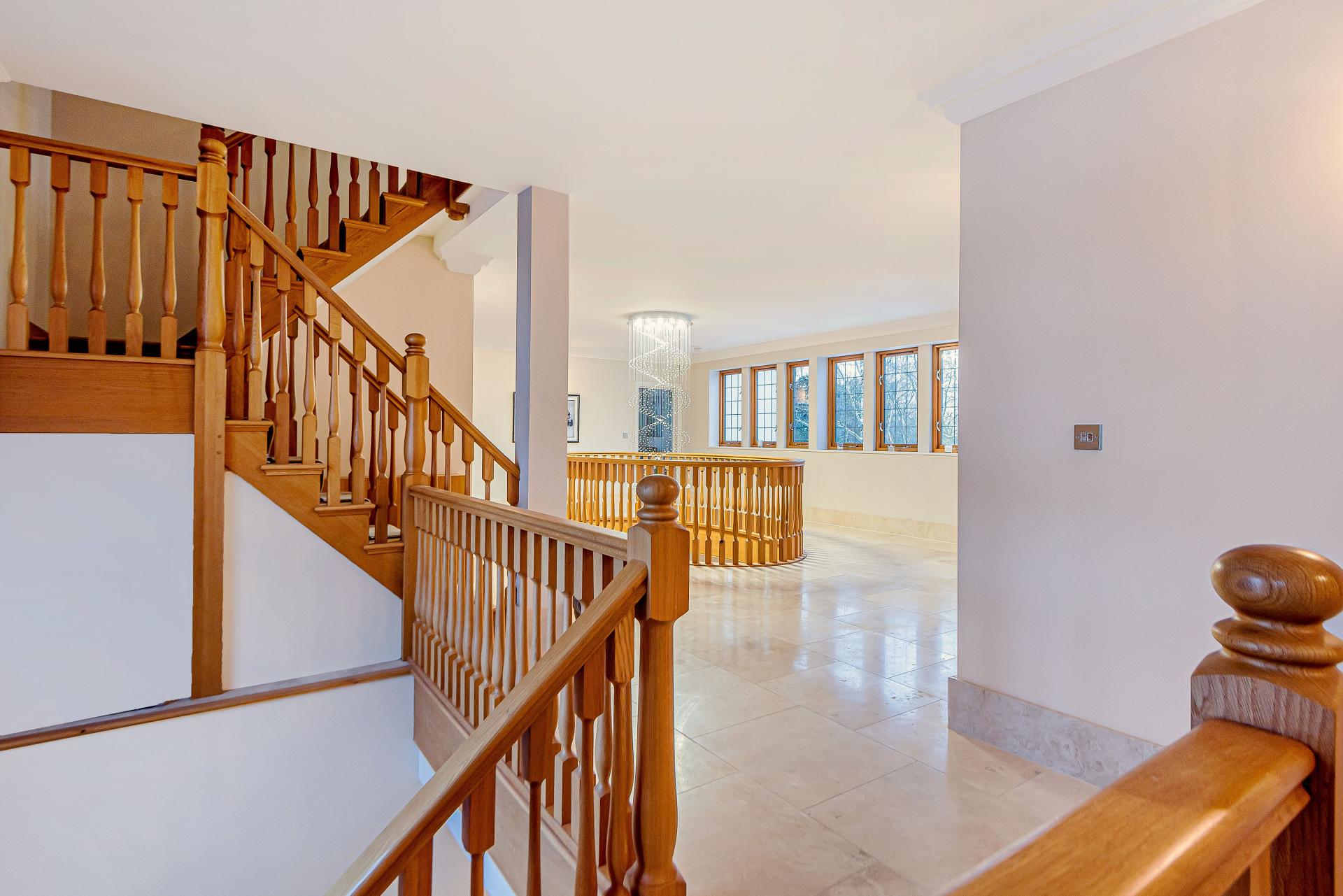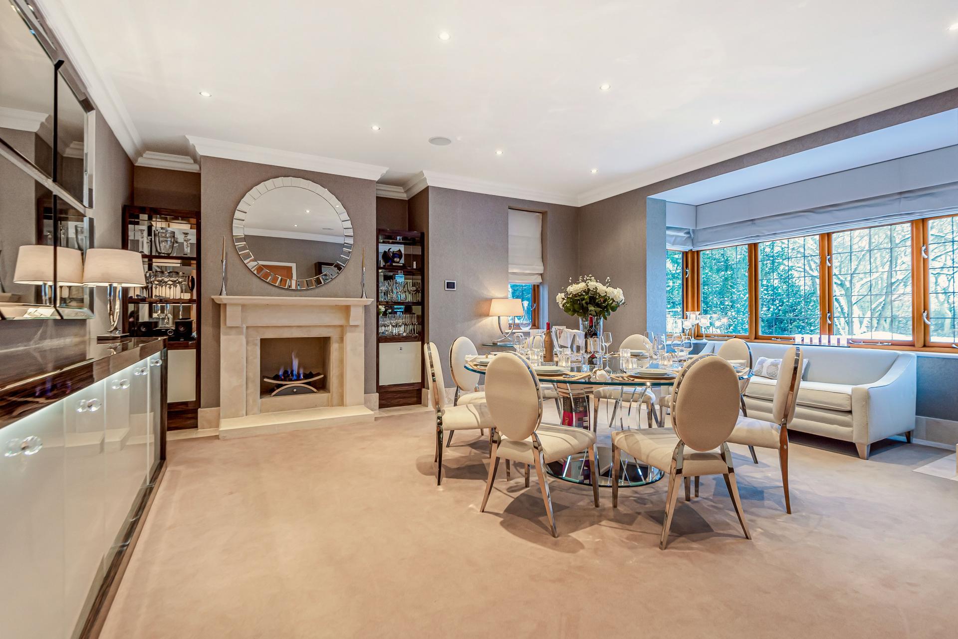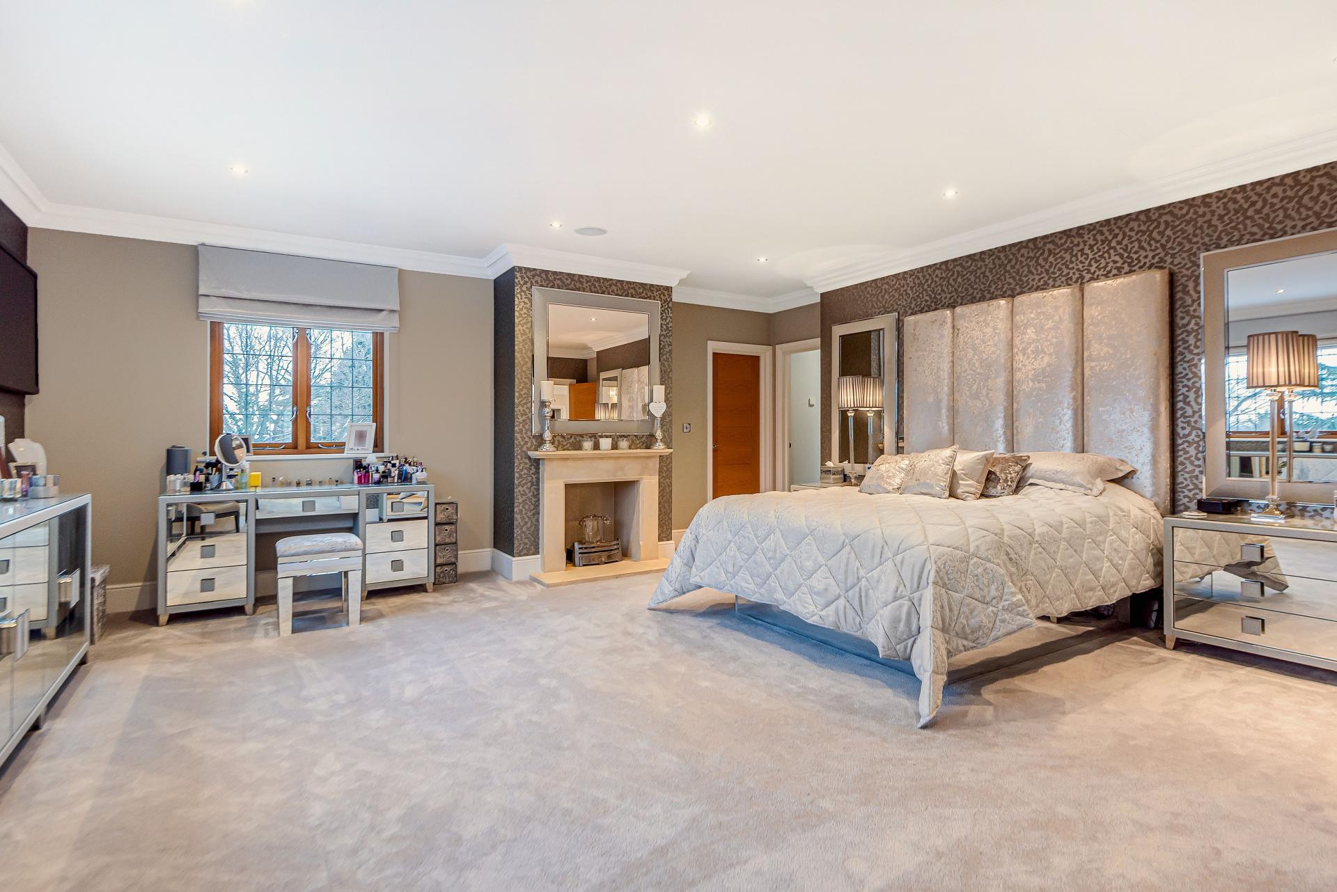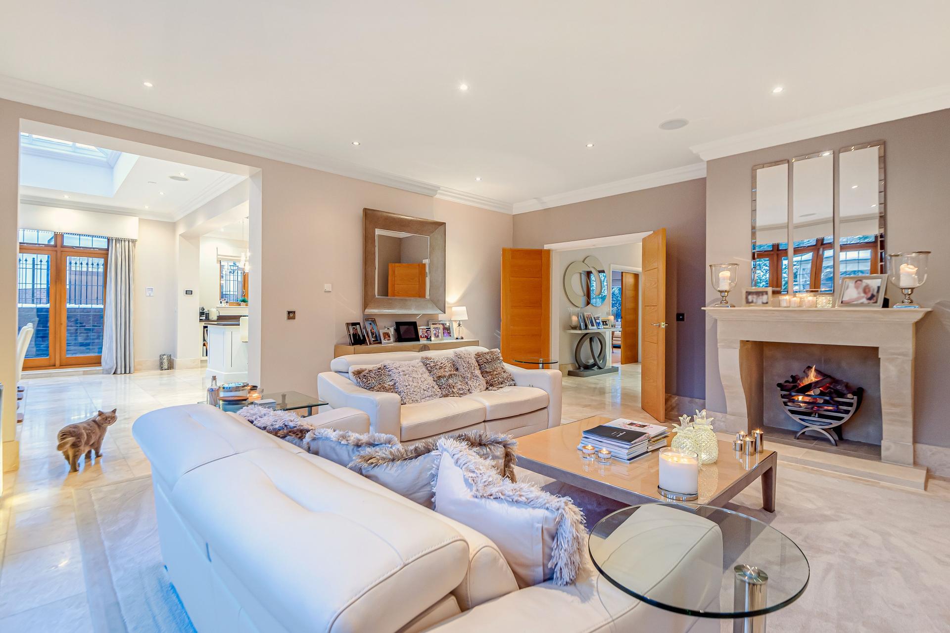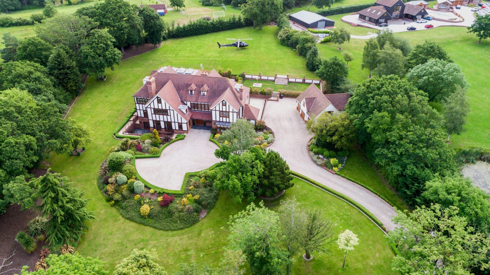 THE PROPERTY Bought off plan by the current owners, we are delighted to offer for sale this beautiful house offering space in excess of 11000 square feet. This iconic brick built family home has timber framed rendered panel outer layer which give it a classic Elizabethan look and is ideal for those looking for a little more than your standard home comforts. From the grand entrance, stunning living rooms and seven ensuite bedrooms to your cinema room, snooker room and indoor swimming complex, everything has been designed and finished to an exacting standard including bespoke open plan fitted kitchen with stylish centre island and the ornate carved fireplaces.