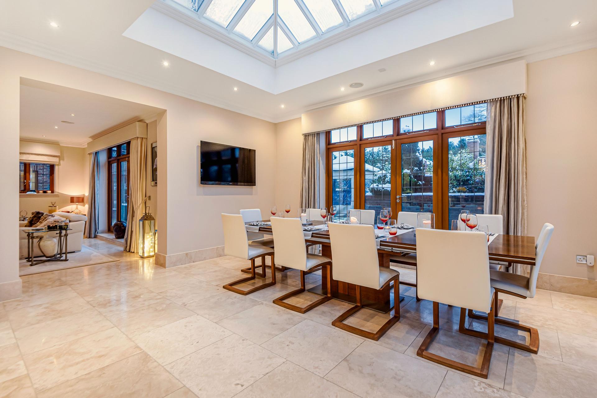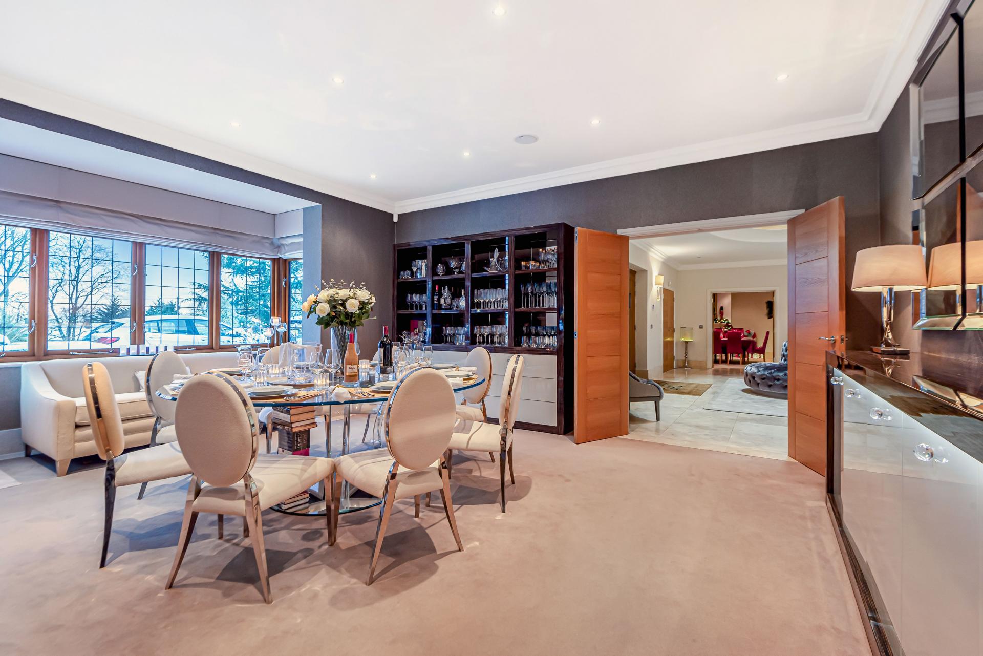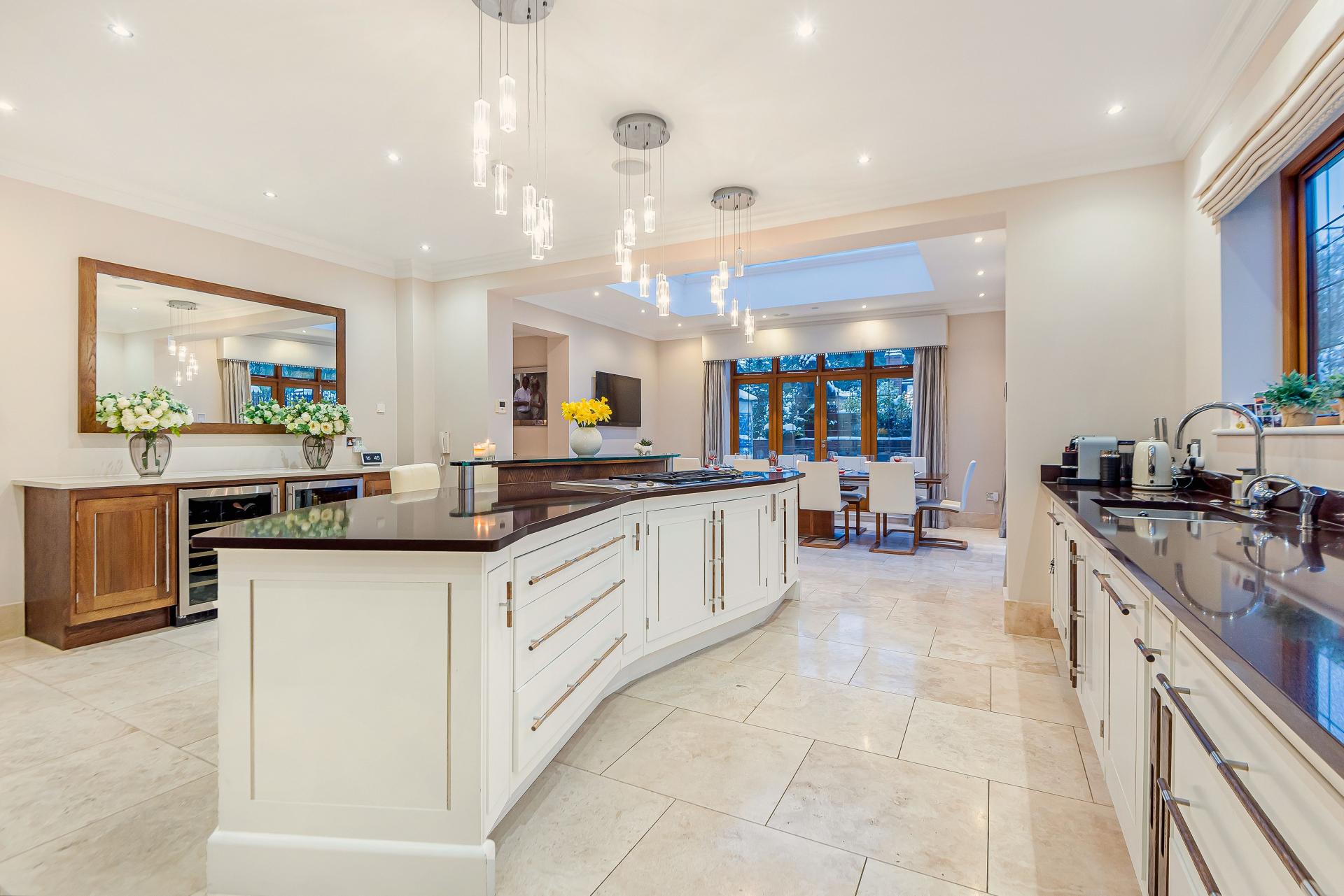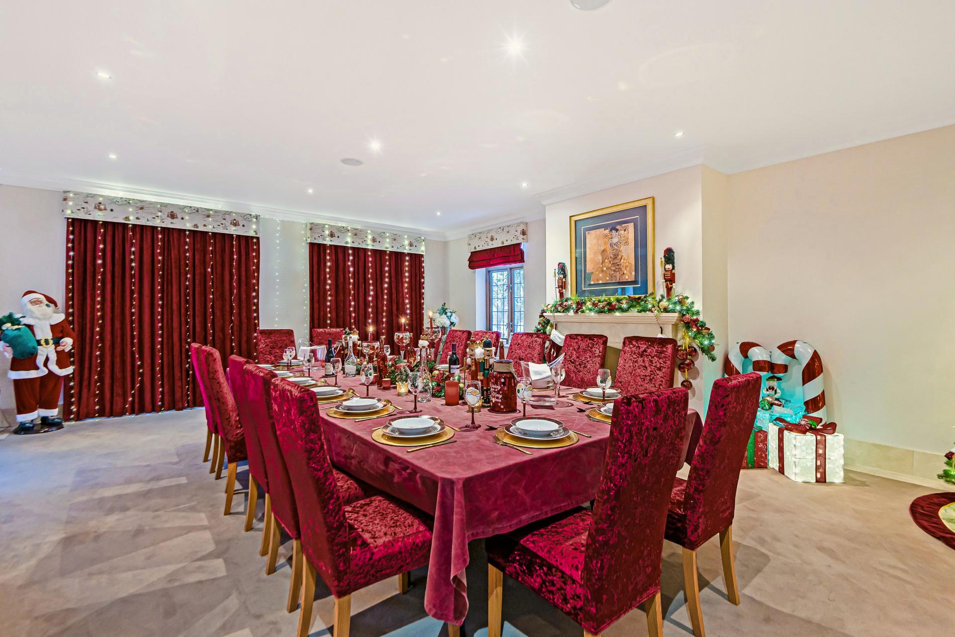 THE PROPERTY Bought off plan by the current owners, we are delighted to offer for sale this beautiful house offering space in excess of 11000 square feet. This iconic brick built family home has timber framed rendered panel outer layer which give it a classic Elizabethan look and is ideal for those looking for a little more than your standard home comforts. From the grand entrance, stunning living rooms and seven ensuite bedrooms to your cinema room, snooker room and indoor swimming complex, everything has been designed and finished to an exacting standard including bespoke open plan fitted kitchen with stylish centre island and the ornate carved fireplaces.