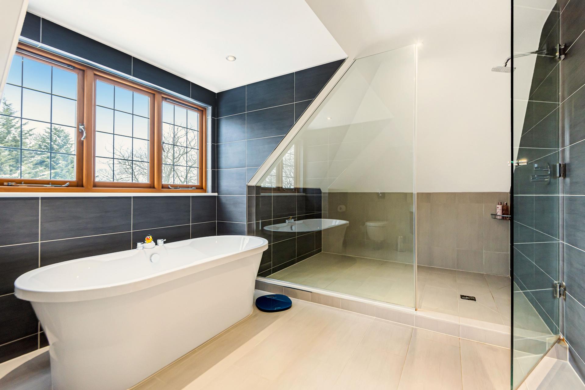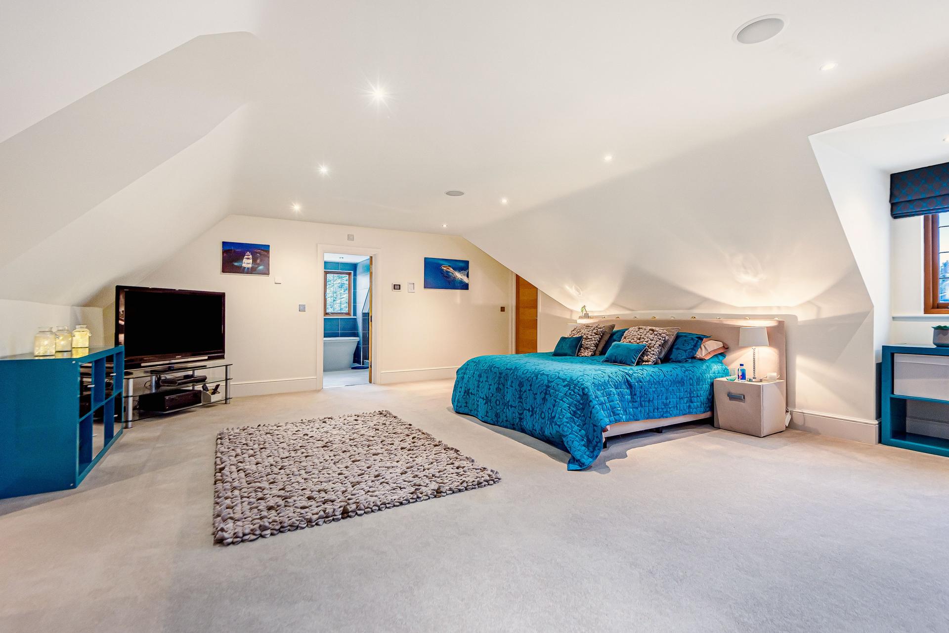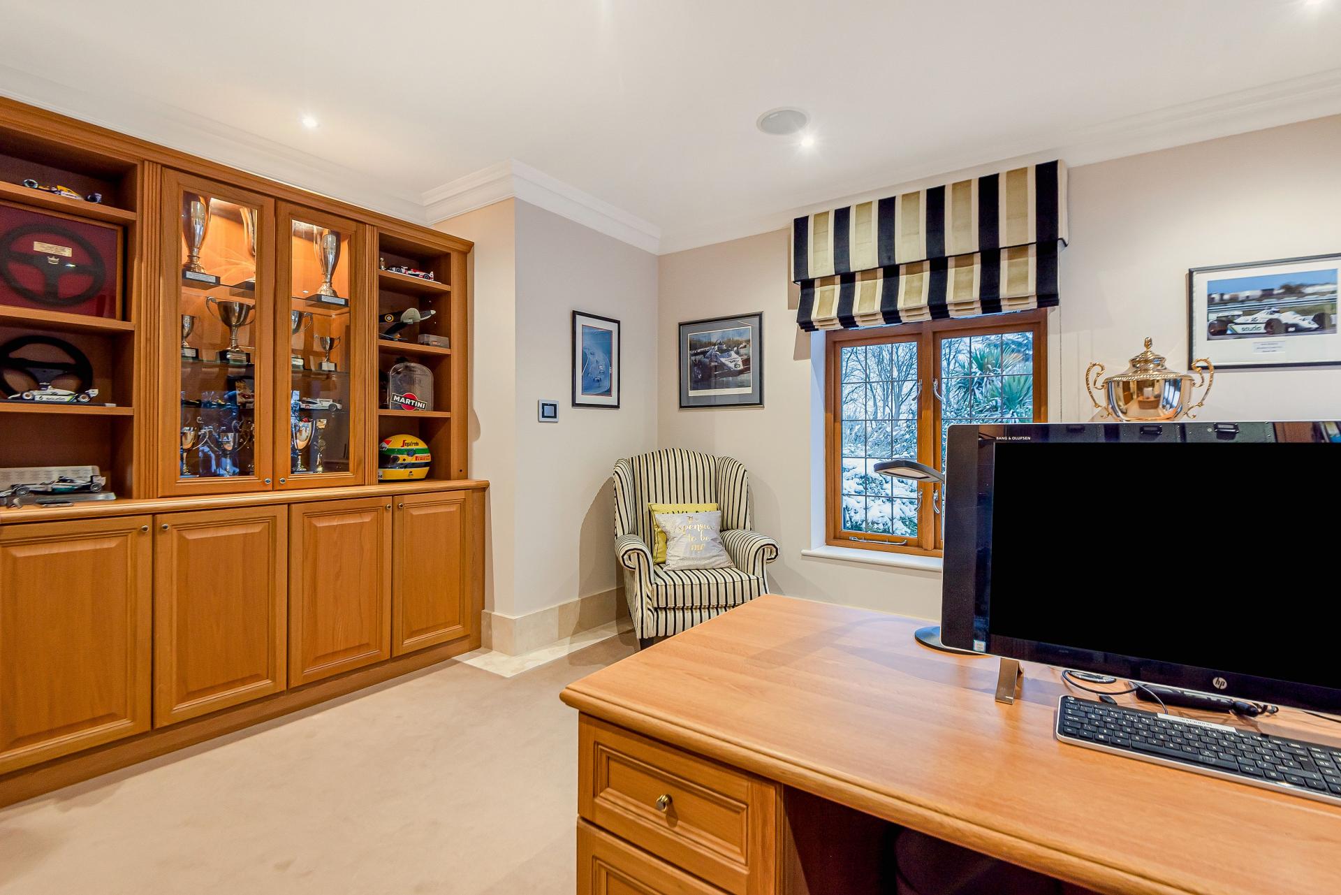 The property is situated within approximately two acres of beautifully landscaped gardens which are a welcoming site as you pass through the electric gates and up the long sweeping driveway towards the triple garage with a self-contained one bedroom flat above, ideal for visiting friends and family.