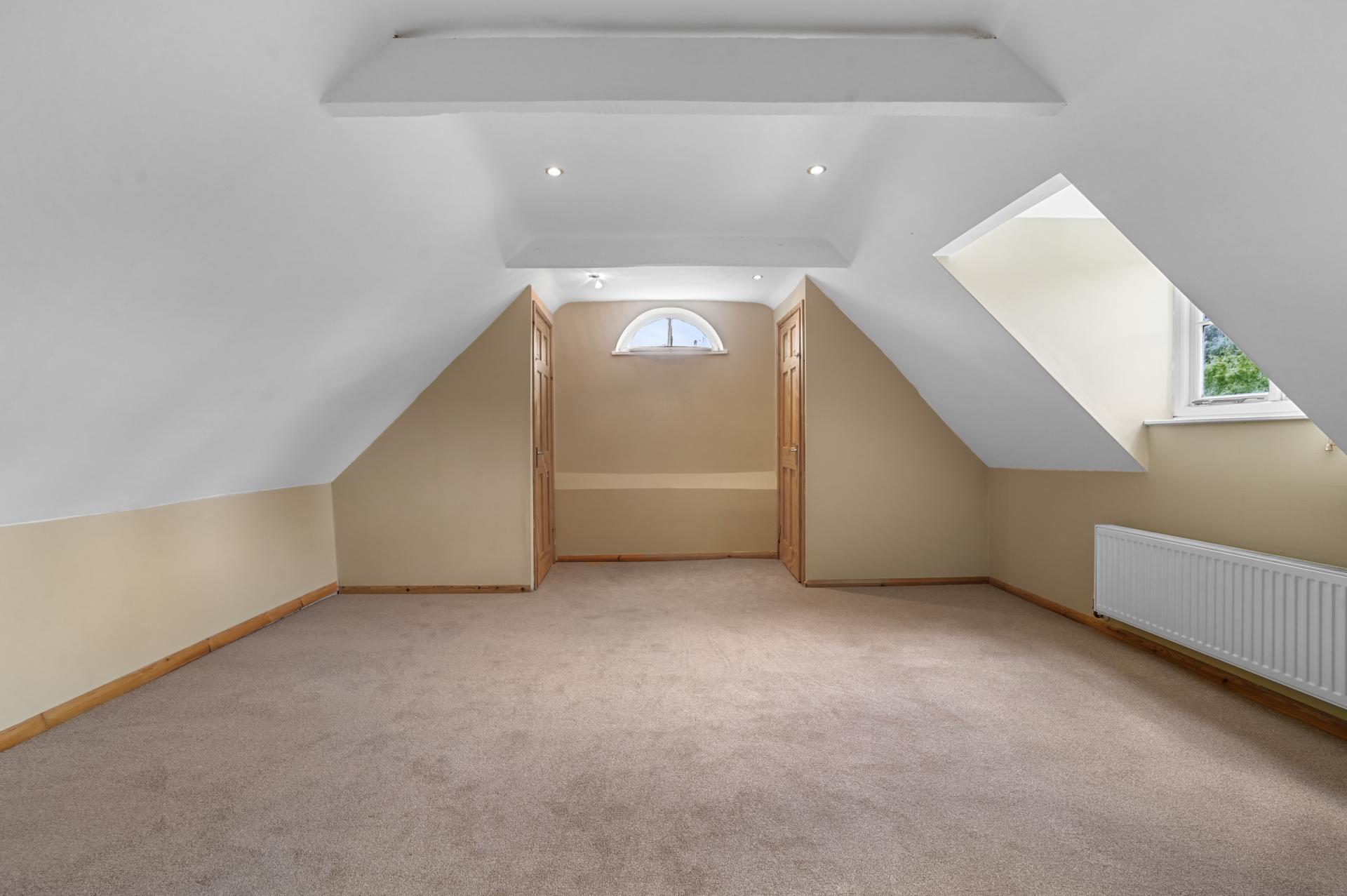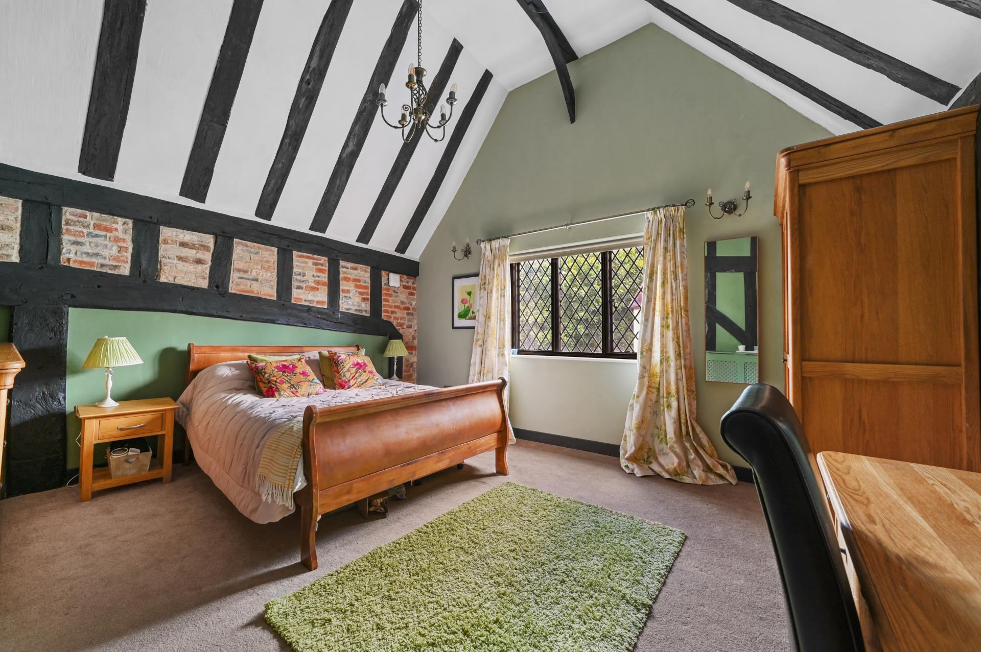 Ascend to the first floor, where luxurious accommodations await. A spacious landing leads to the impressive principal bedroom, complete with an opulent en-suite and dressing room. Explore a collection of well-proportioned bedrooms, each thoughtfully crafted for privacy and relaxation. Featuring exposed beams and vaulted ceilings, these rooms are complemented by three stylish bathrooms that combine elegance with functionality. A further en-suite bedroom and a cloakroom complete this floor.