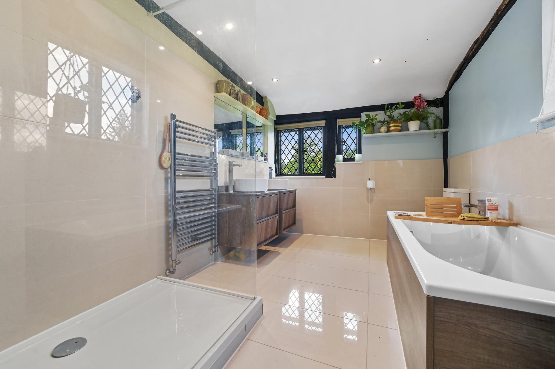 We wanted to retain all of the character and quirkiness of the original house whilst creating a modern home with up-to-date technology. This involved a complete restoration of the fabric of the building – new doors and windows, repairs to the oak frame, replacing modern cement render with lathes and lime plaster, adding insulation. We had to rebuild all three of the chimneys, repair the roof and remove ugly dormer windows. From the outside Old House now looks as it would have done five hundred years ago. On the inside it is a modern home with intact original features. The plumbing is new, including modern boilers and six bathrooms with power showers. The electrical system is almost entirely new and hyper fast broadband installed. Most of the plastering has been replaced and new oak floors laid. We believe that Old House is now in as good a condition as a house of its age can be.