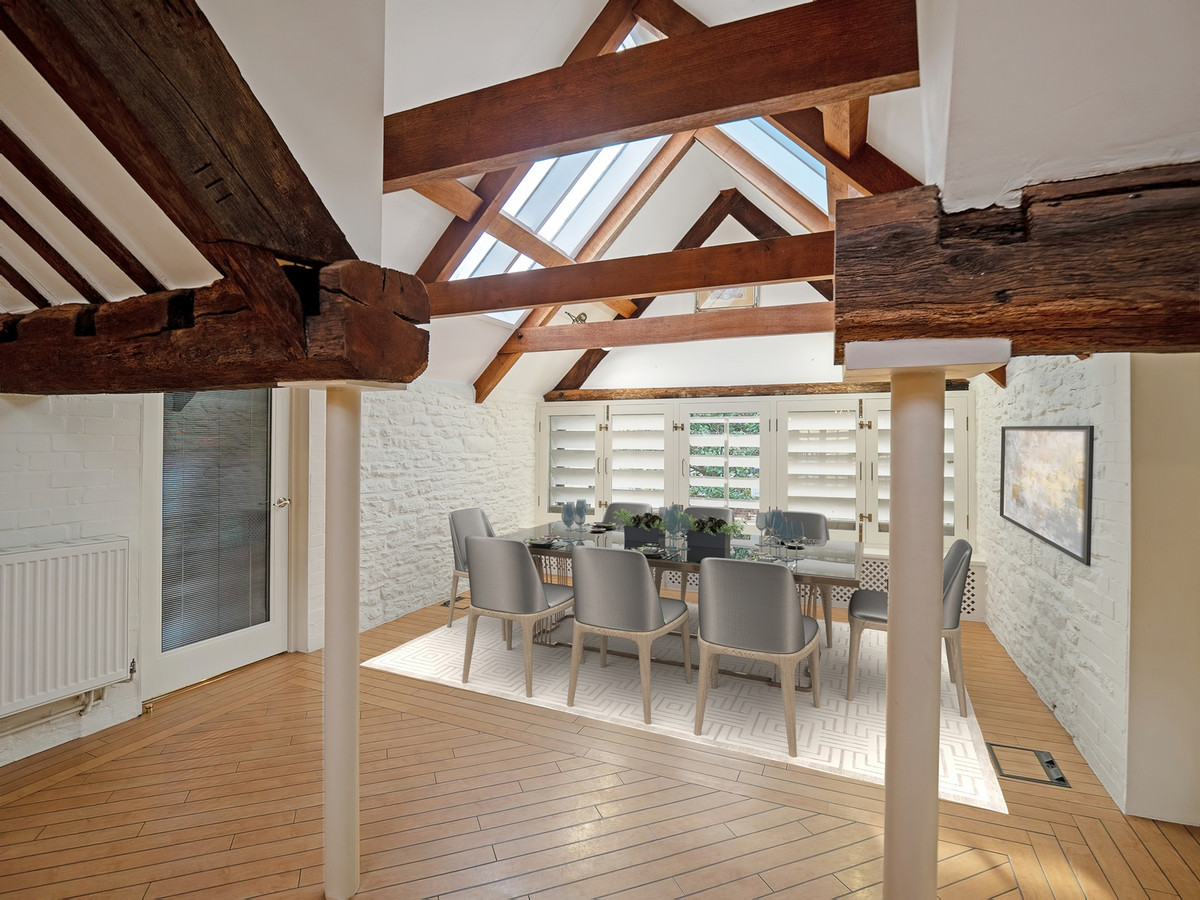 This property has been beautifully designed with a wonderful flow between the rooms, with open spaces for family and friends to gather and quieter corners to work or study. There are three large bedrooms and two bathrooms on the ground floor. On the first floor is an incredible dual aspect reception room, bursting with character and an abundance of light, a kitchen/breakfast room, shower room and another room which could be a fantastic fourth bedroom or additional reception room or office.