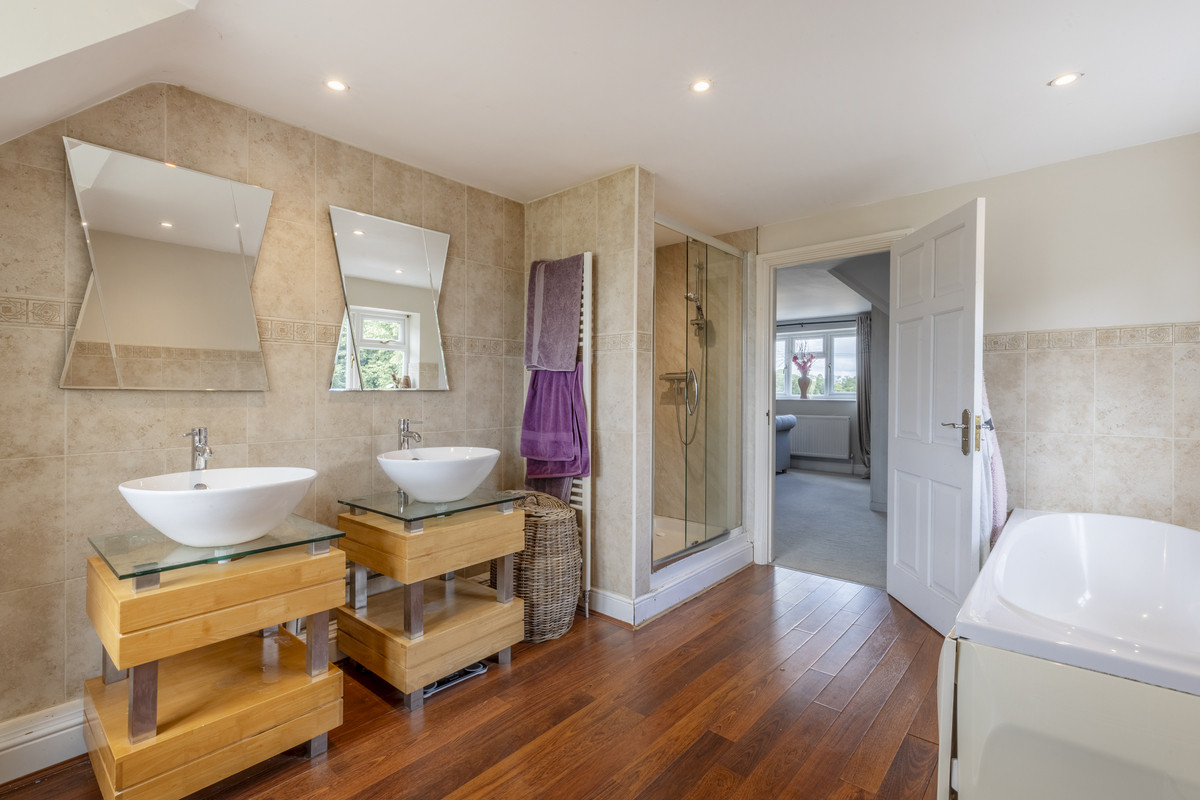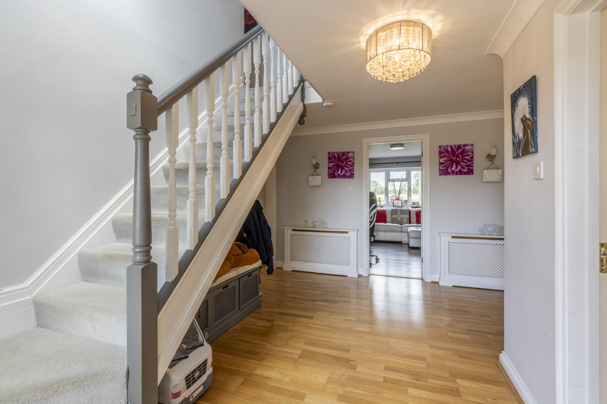Upstairs, the principal suite enjoys an en-suite bathroom, accompanied by four further bedrooms, a family bathroom, and a study/storeroom, ideal for working from home.