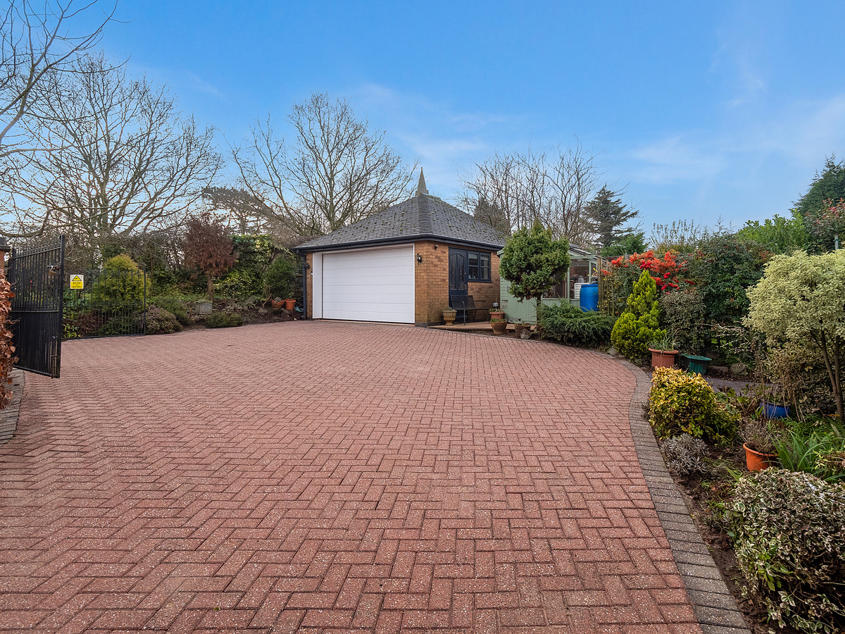 - Surrounding garden wraps around the entire property, featuring hedge rows, mature trees, and flower-beds, ensuring privacy and tranquility