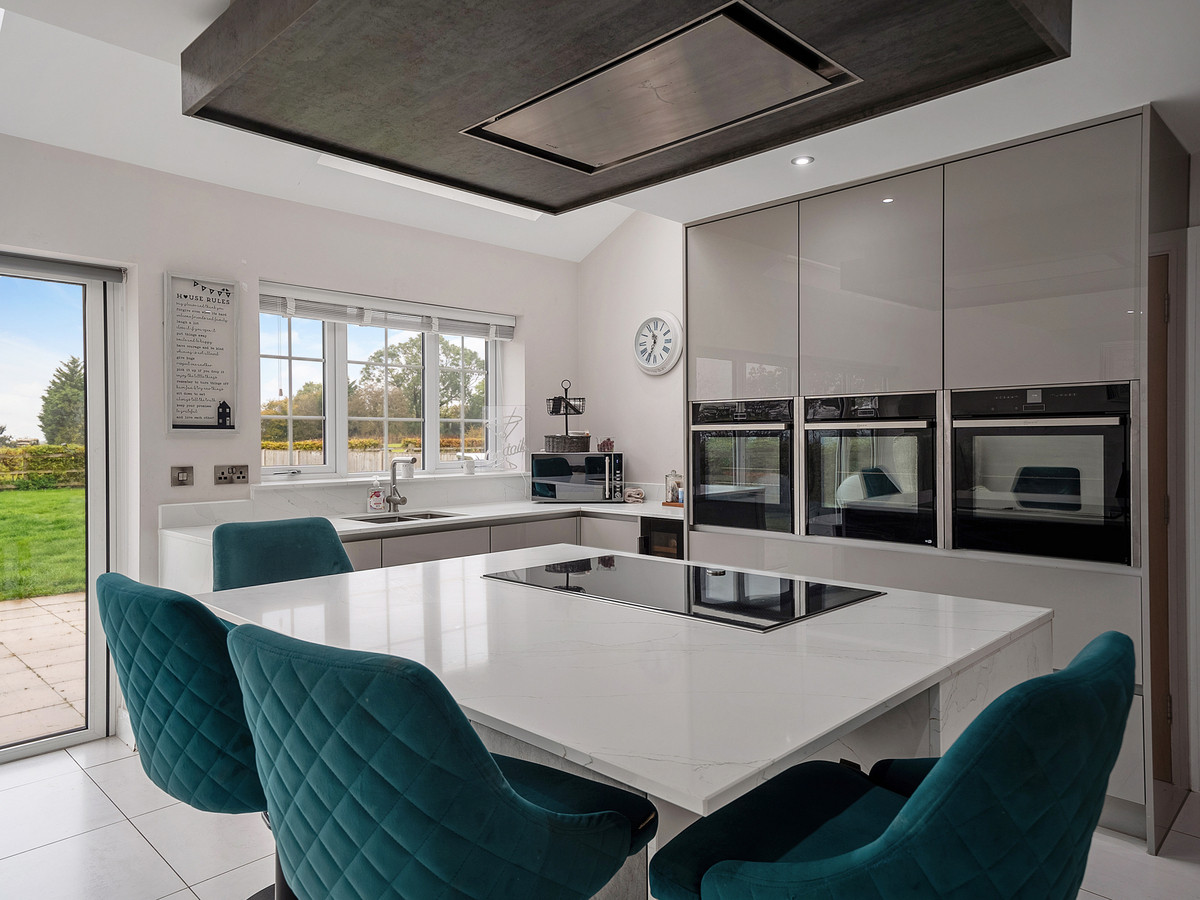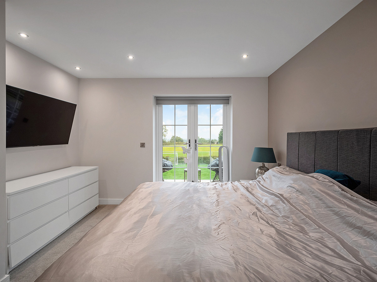 Upstairs to discover a tranquil retreat of spacious bedrooms, including a luxurious main suite with a private balcony offering breath-taking countryside views. The ensuite bathroom is a true spa-like experience, while additional bedrooms feature convenient en-suite facilities.