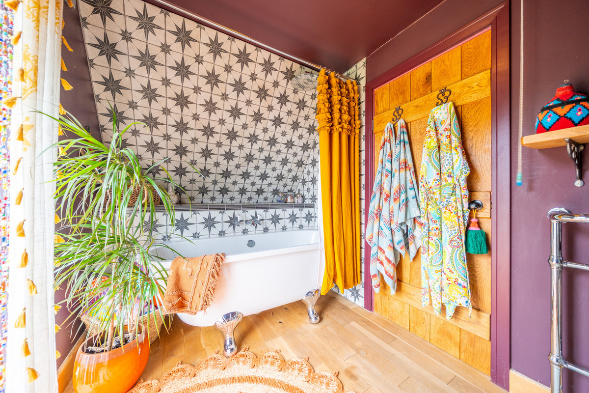 With its own stable door entrance, Annexe Two is full of character and charm. The open-plan kitchen, living, and dining area features a butler sink and warm wood accents throughout, creating a cosy yet stylish space. A downstairs cloakroom and utility room add practicality, while a spiral staircase leads to a breathtaking vaulted bedroom with rustic timber flooring, a dressing room, and a vintage-inspired en-suite complete with a roll-top bath and views across the countryside.
