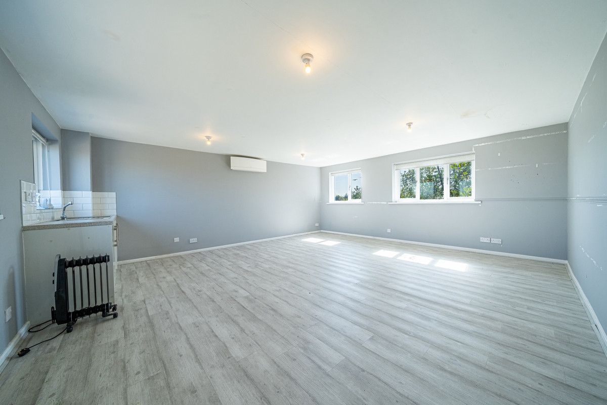 Beyond the main house, the detached double garage includes a downstairs cloakroom and two first-floor rooms — ideal for conversion into a self-contained annexe, art studio, gym, or yoga space.