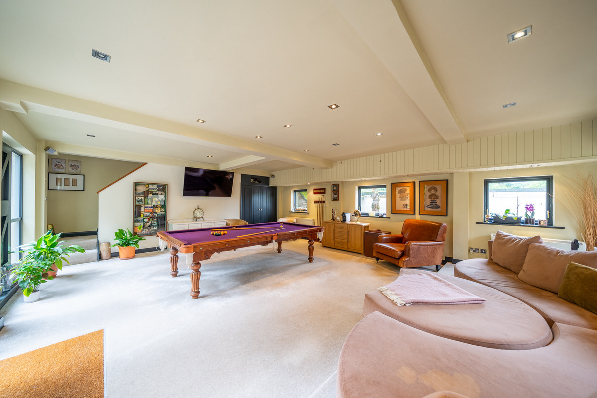 Also on the property is a spacious coach house, accompanied by an additional double garage. Positioned separately from the main residence, it serves various purposes and offers potential for generating additional income if desired. The cottage includes a well-appointed kitchenette, two large double bedrooms with distinctive vaulted ceilings, and en suite bathrooms, providing comfortable and private accommodation.