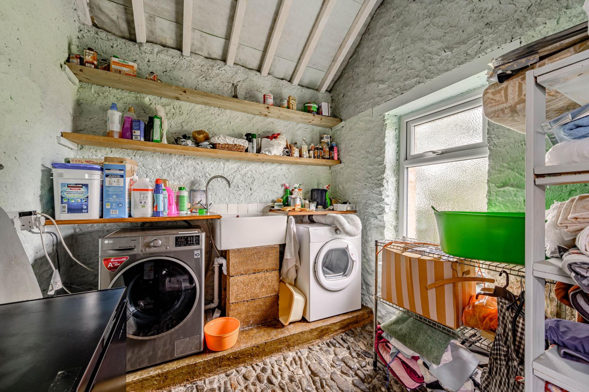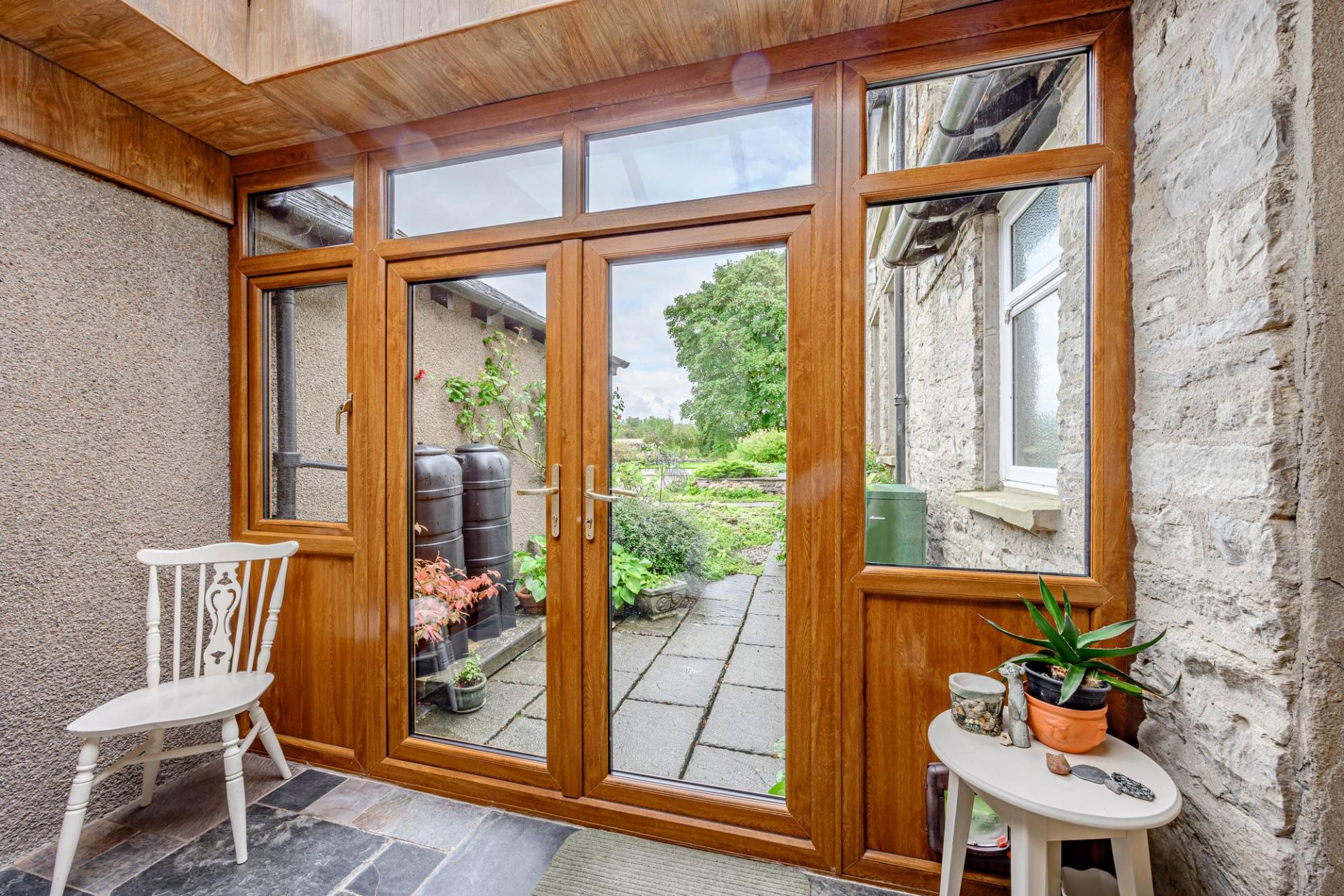 The current owners have cleverly incorporated the original outbuildings into the main house via a new attractive glazed rear porch/passageway, This clever use of space creates a lovely room overlooking the garden at the same time adding the outside WC, log store and utility/washroom into the house itself. The utility has a charming, cobbled stone floor with Belfast sink and ample space for white goods. It also links directly into the garage, which is bright with power and numerous built-in cupboards and a remote-control door. The garage did have planning permission for converting it into a two-bedroom annexe, which has since lapsed.