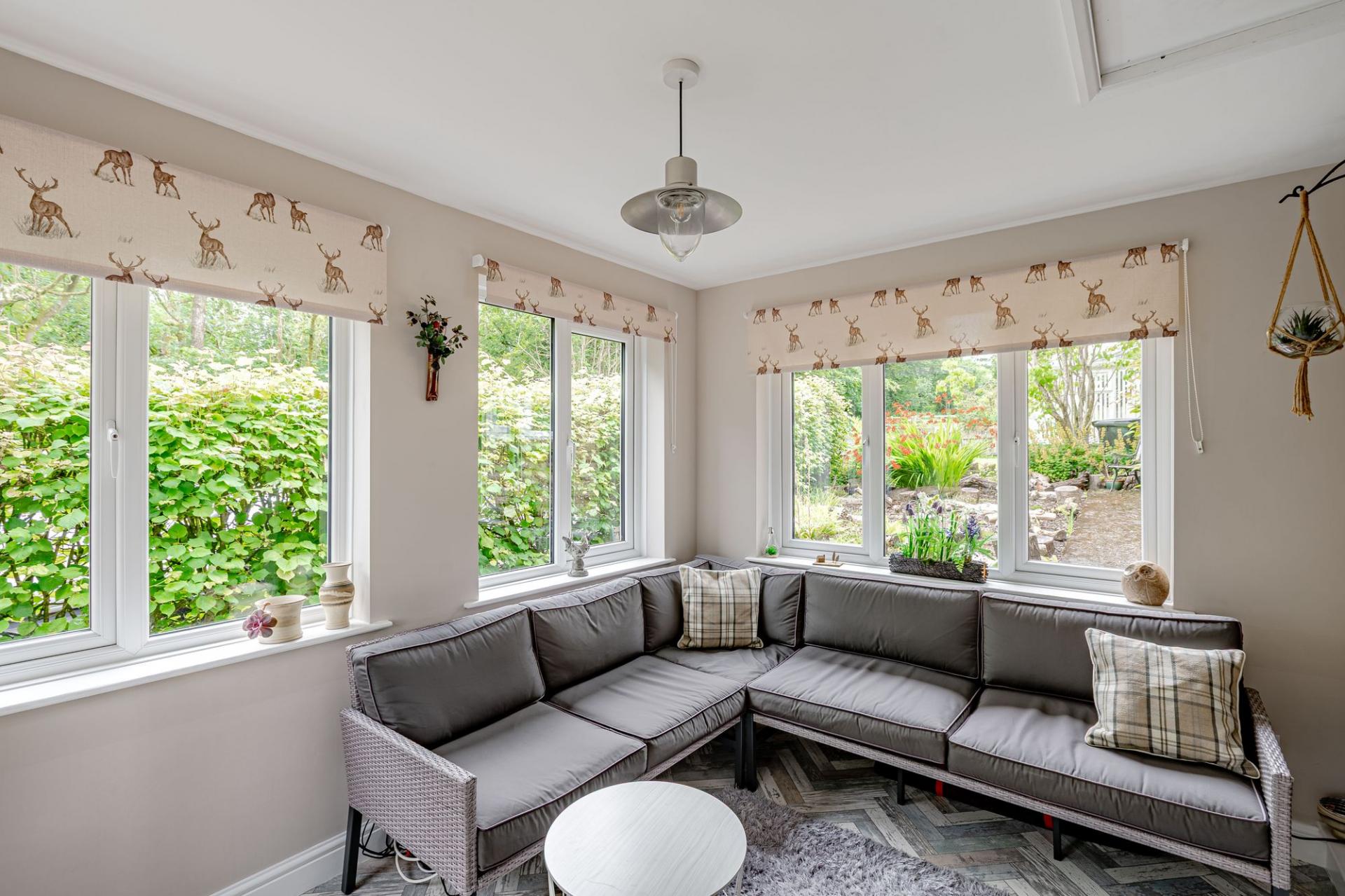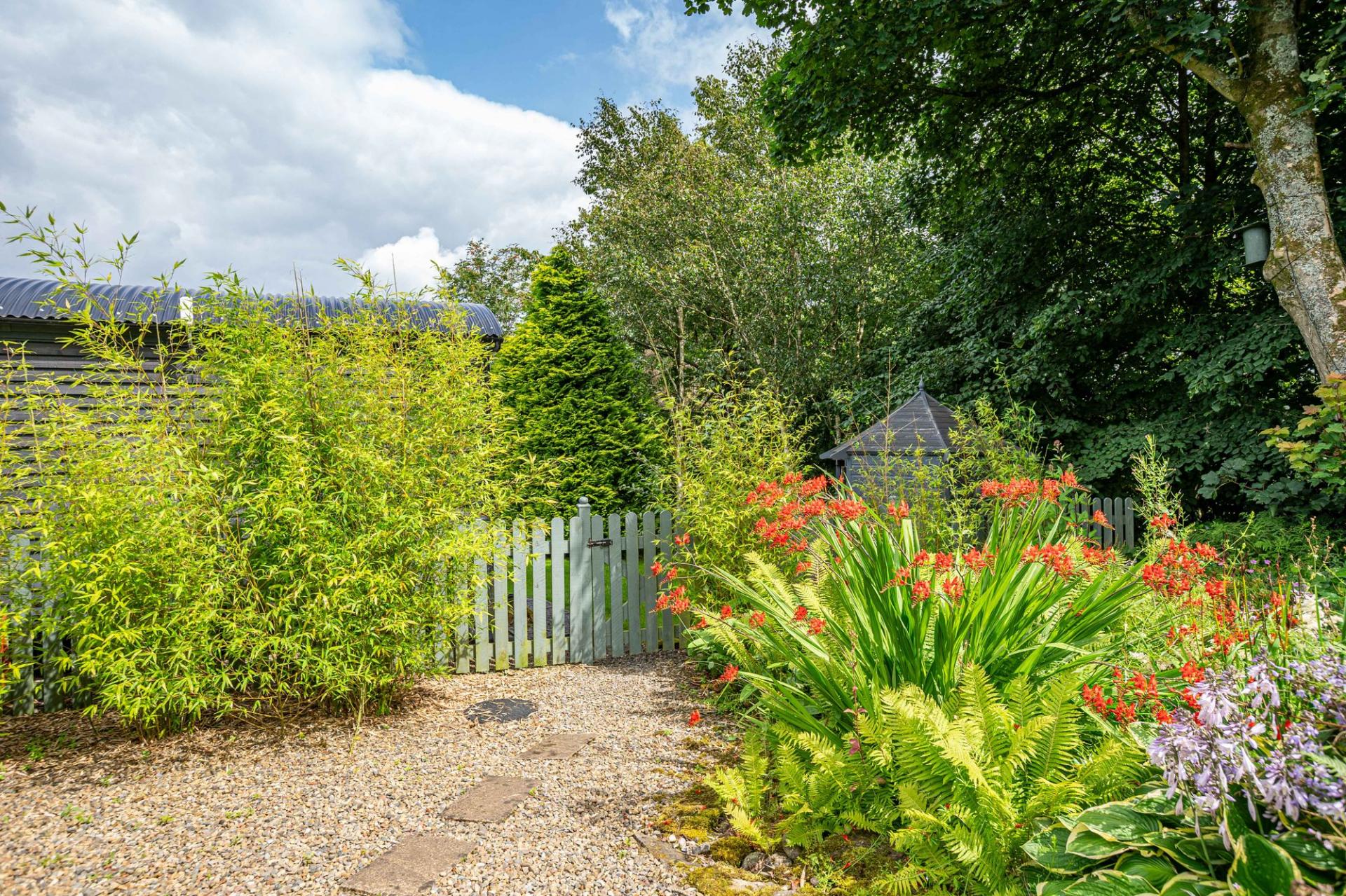 At the Eastern end of the property sits a further extension of the plot which has a separate gated access, gravelled driveway and hardstanding area, overlooking the golf course. All areas benefit from a good level of privacy. This area is prime for development of the Shepherds Hut site, further parking or substantial storage space (all subject to the necessary consents being granted).