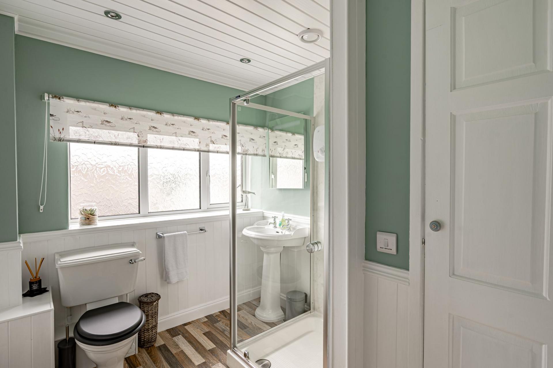 The ground floor has attractive laminate wood flooring throughout, that continues into the main living area, creating a lovely flow through the property.