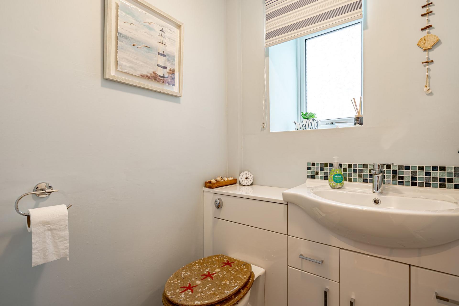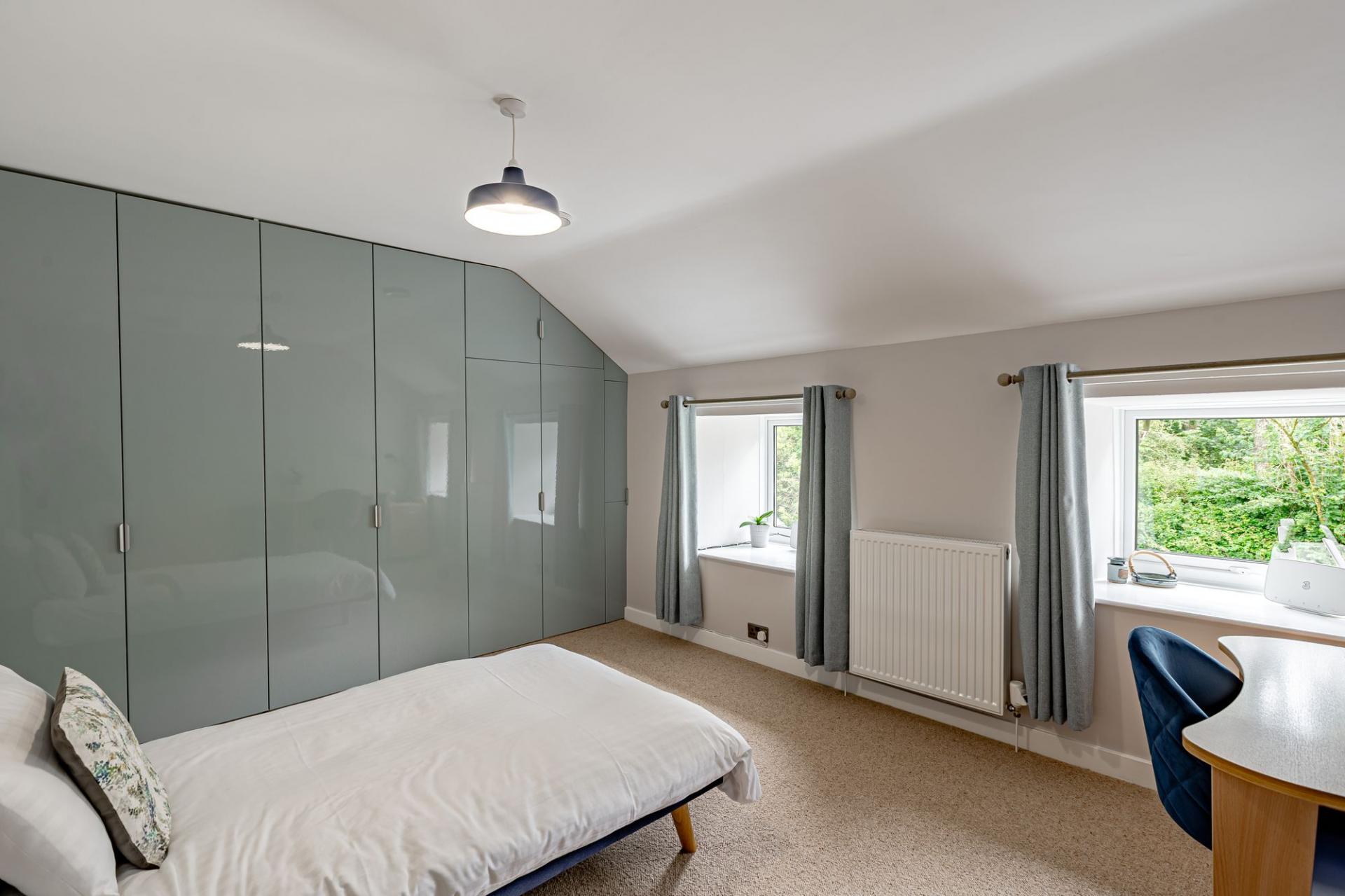 The main living room is sizeable and tasteful. The room features a traditional stone fireplace and log burner, for those cosy winter nights. It is a bright room benefitting from four charming south facing windows, looking out onto the front of the property. This generous space has allowed the current owners to configure the room into three distinct areas; a dining area, office space and a spacious living area.