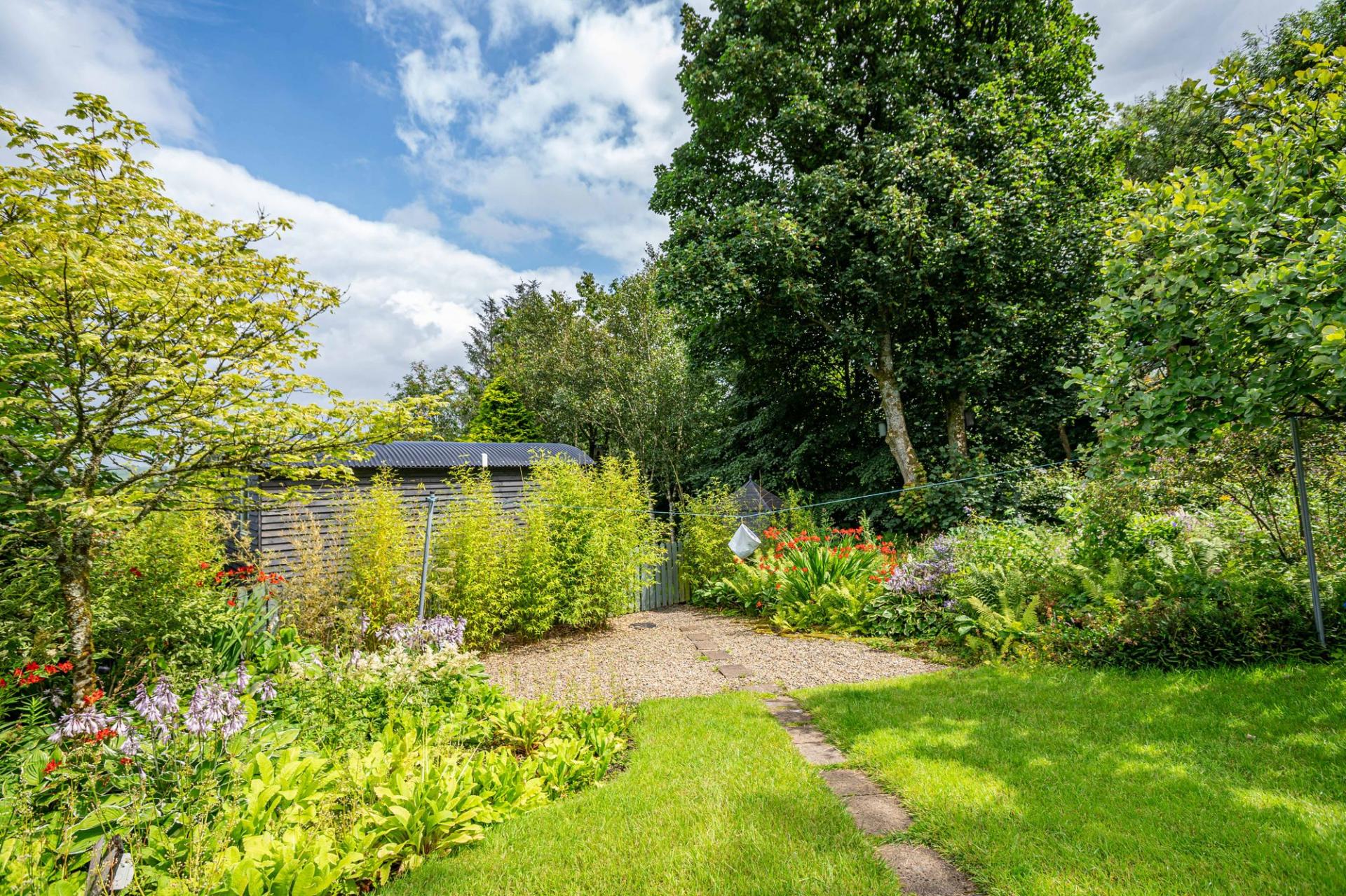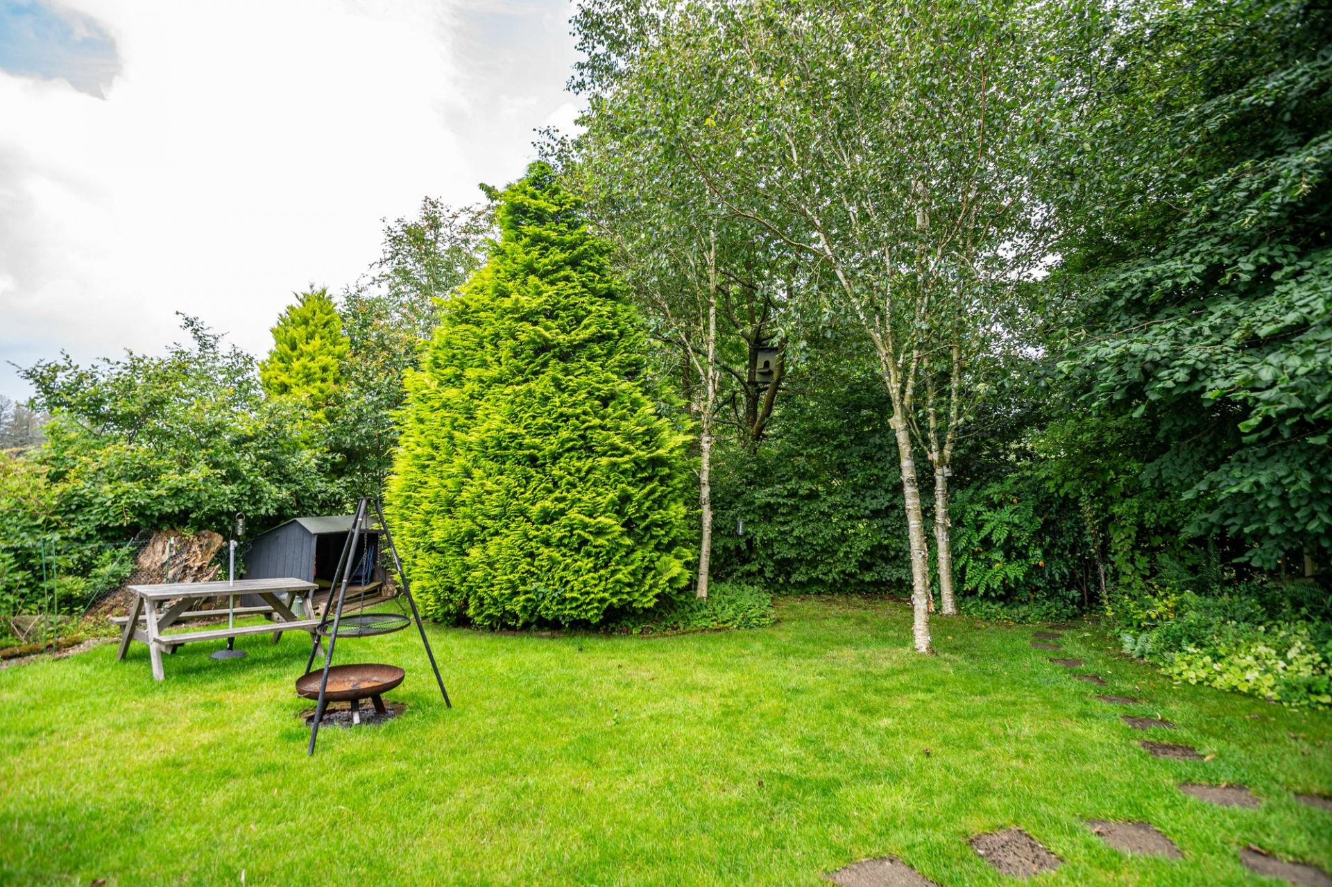 Externally Braeside boasts a generous plot of approx. 0.7 acre, cleverly split up into separate areas enjoying different aspects of the garden including a rockery, vegetable plots, a greenhouse, lawn and flower beds. A detached stone double garage is situated on the driveway, superbly equipped, including an inspection pit, power, extensive shelving and windows, making it a really useful space or workshop.