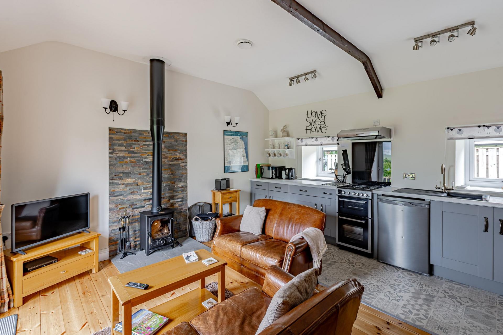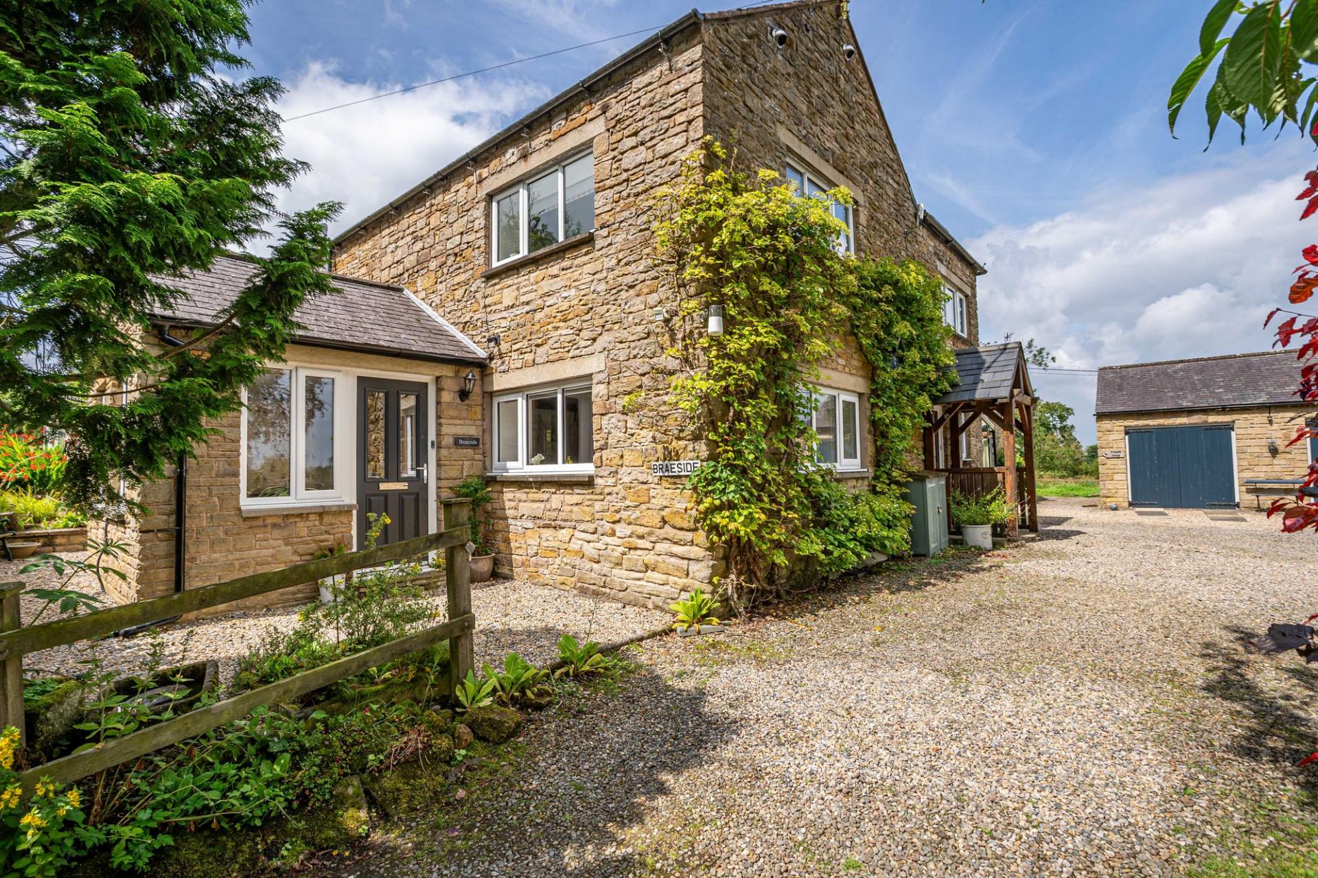 Stanegate Cottage, originally a cow byre and converted 25 years ago has been considerably updated by the current owners just 3 years ago. It is a separate annexed stone cottage within the grounds of Braeside. It is attractively designed on the ground floor level, offering practical and flexible accommodation, perhaps for an elderly relative or to continue as a profitable holiday let. The property comprises of two double bedrooms, a modern shower room and an open plan kitchen/living room with multi fuel stove. The property offers delightful, extensive views over the golf course and rolling Northumbrian hills beyond.
