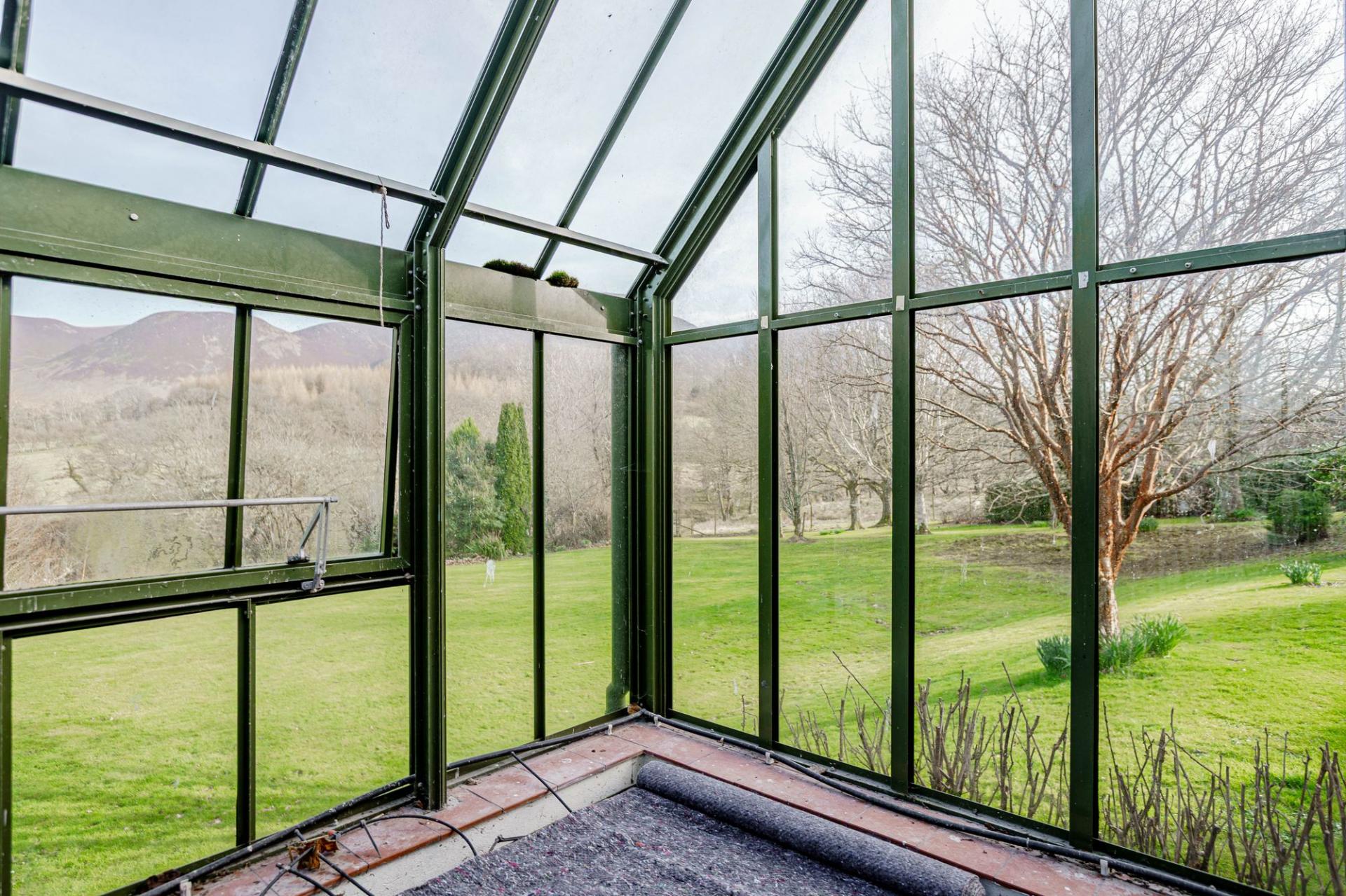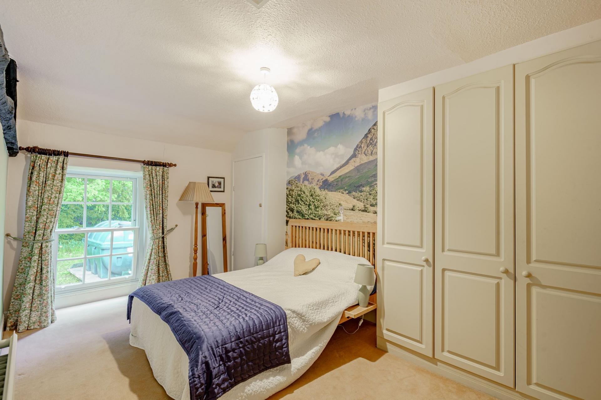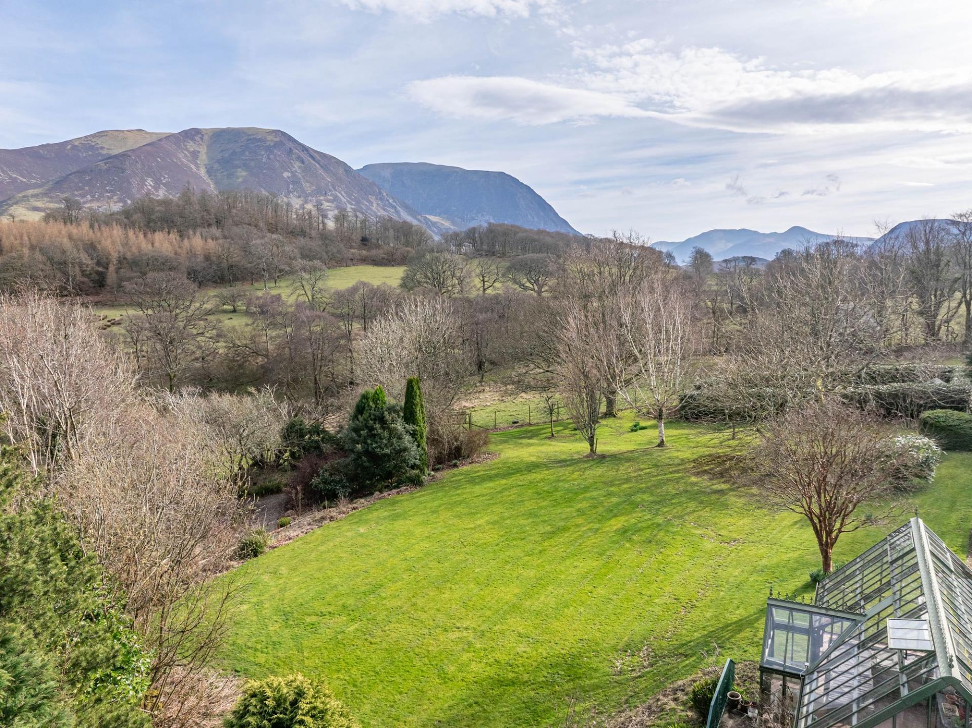 Upstairs in the main house, there are three generous double bedrooms. Both guest bedrooms are spacious and offer low level, recently replaced double glazed sash windows. A large family bathroom features a spacious walk-in shower, generous vanity unit and storage and additional storage / linen cupboard. The main bedroom is a delight, boasting built-in storage, a large window and glazed door providing access to the roof terrace and views of the gardens below. The fully paved roof terrace was added as part of the construction of the garden room and is a real sun trap. It offers the opportunity to relax and appreciate the stunning landscape, with views of the surrounding fells from Kirk Fell to the north, past Whinlatter, Grisedale Peak, Dodd, Whiteside and then Grasmoor down towards the Crummock hills.