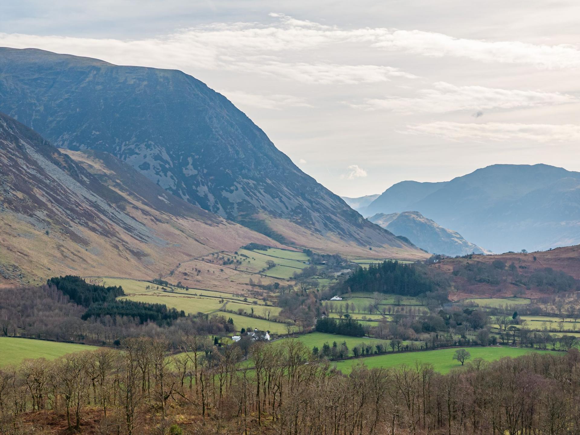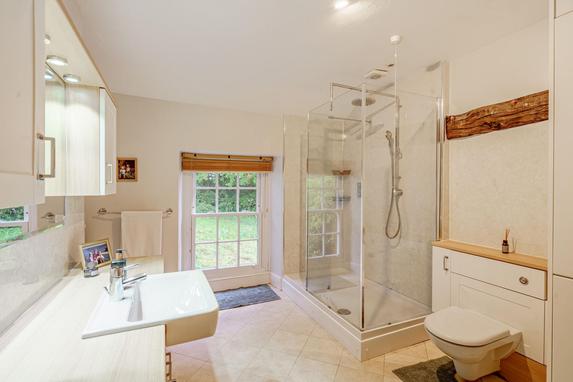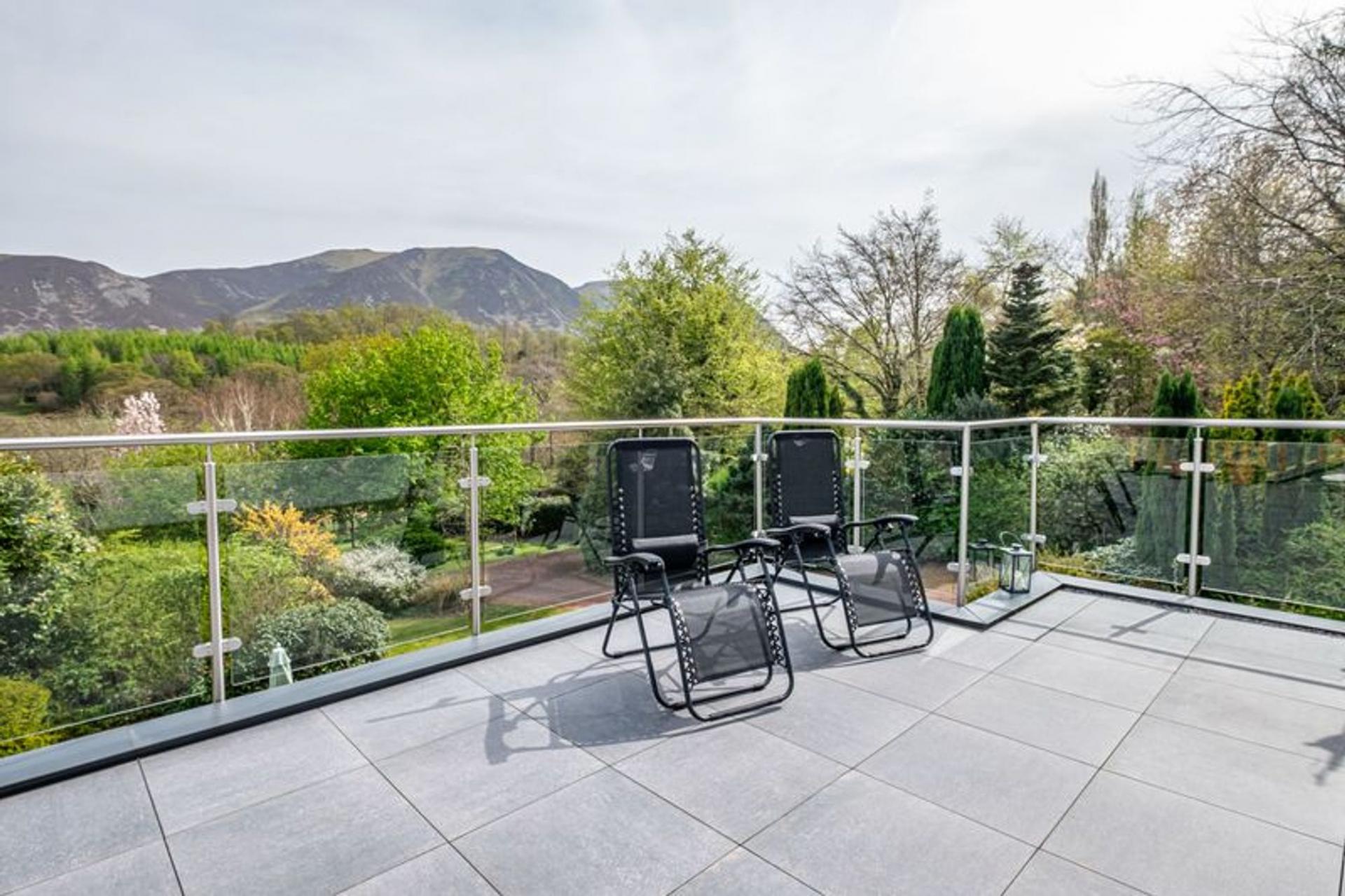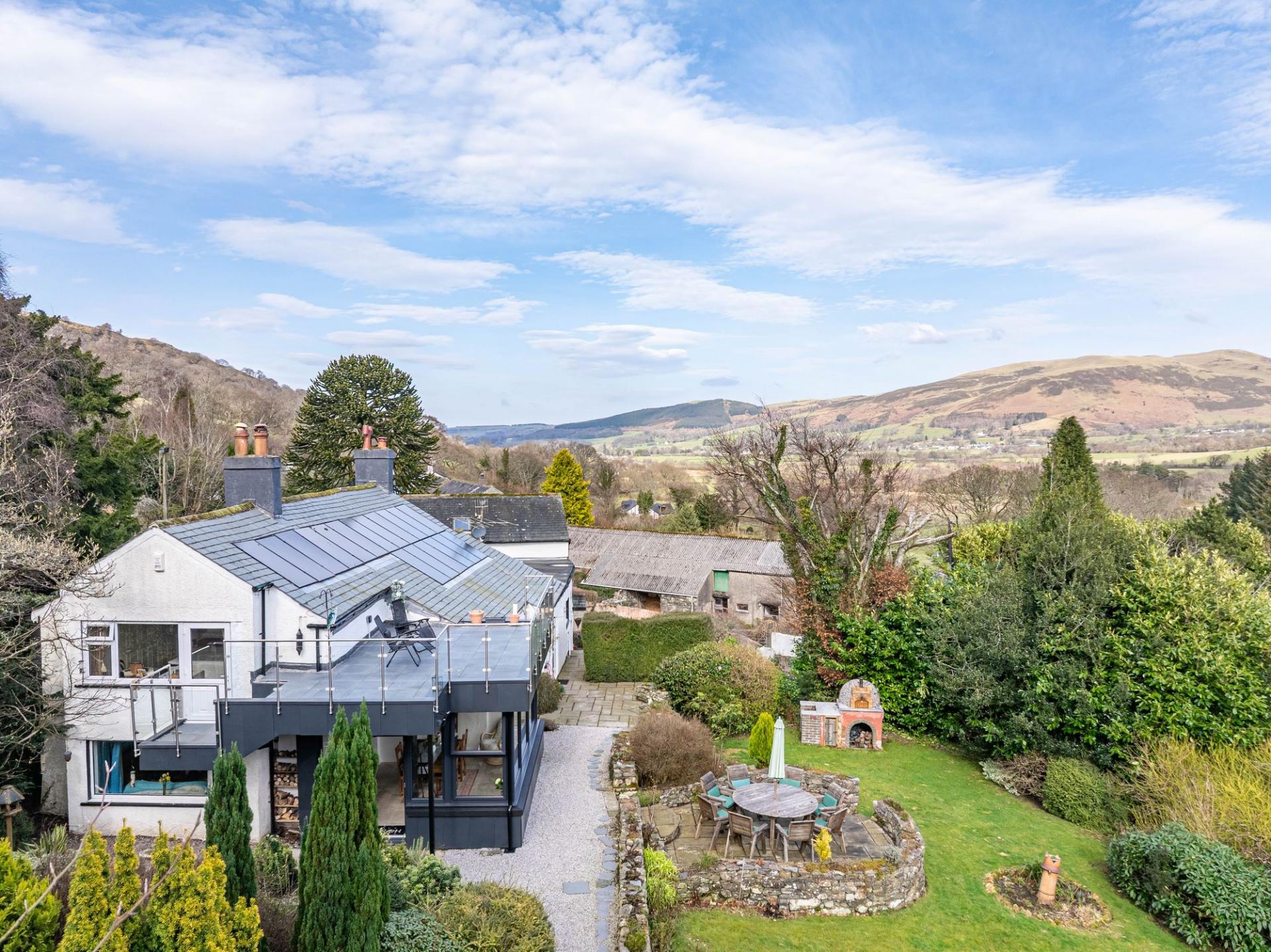 Upstairs in the main house, there are three generous double bedrooms. Both guest bedrooms are spacious and offer low level, recently replaced double glazed sash windows. A large family bathroom features a spacious walk-in shower, generous vanity unit and storage and additional storage / linen cupboard. The main bedroom is a delight, boasting built-in storage, a large window and glazed door providing access to the roof terrace and views of the gardens below. The fully paved roof terrace was added as part of the construction of the garden room and is a real sun trap. It offers the opportunity to relax and appreciate the stunning landscape, with views of the surrounding fells from Kirk Fell to the north, past Whinlatter, Grisedale Peak, Dodd, Whiteside and then Grasmoor down towards the Crummock hills.