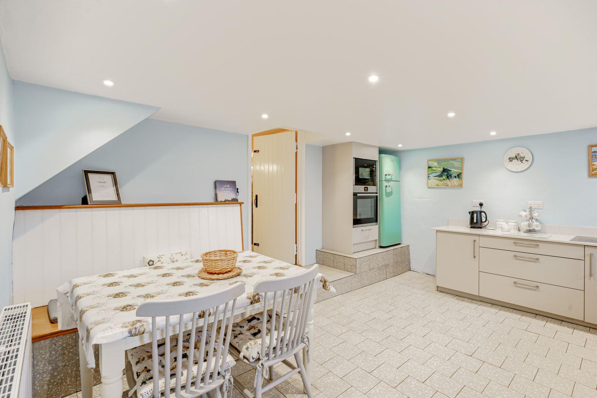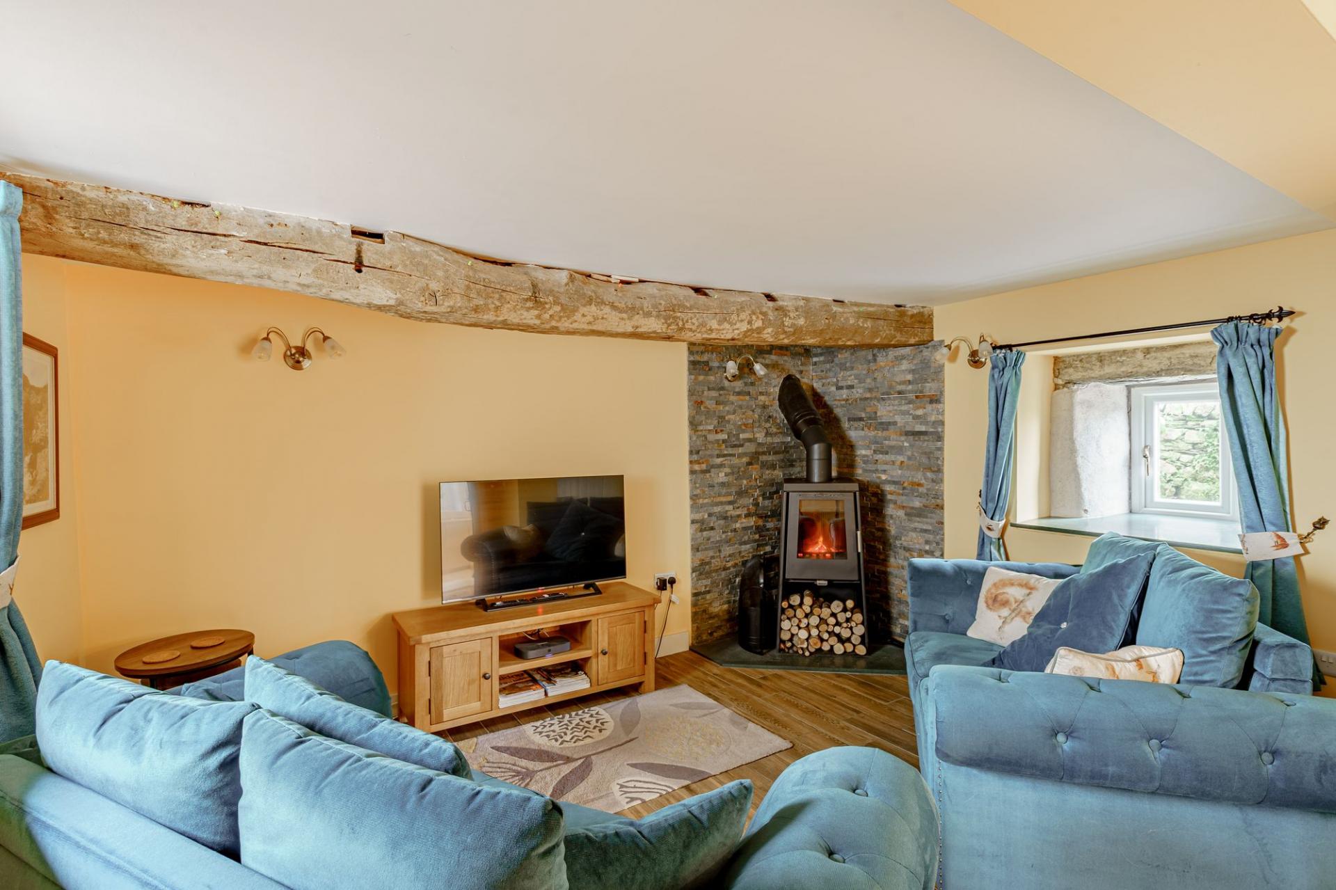 The barn accommodation is accessed through an internal door from the kitchen but also has its own front and rear entrance doors as well as its own parking area and outside seating. The practical entrance hall to the cottage features tiled floors and plenty of space for coats and boots after a day on the nearby fells. On the lower level a modern, recently updated kitchen / dining space boasts NEFF appliances and plenty of worktop space. A cosy living room with a modern log burning stove has been added by the current owners and is the perfect place to sit and relax after a day on the fells. A downstairs WC is located by the door for easy access from the outdoors.