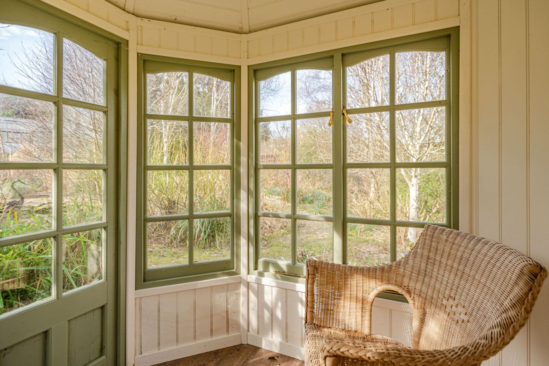A large garage space is provided with automatic up and over doors and here can also be found the property’s EV charging station. Next to the garage is a separate wood store in which is kept the tractor mower for the grounds. To the rear of the garage, a beautiful Hartley Botanic greenhouse provides further opportunity for the green fingered. Electricity is installed here and direct access from the garage provides additional storage. From the greenhouse the lawn slopes down towards a large pond and summerhouse, a tranquil place to sit and relax.