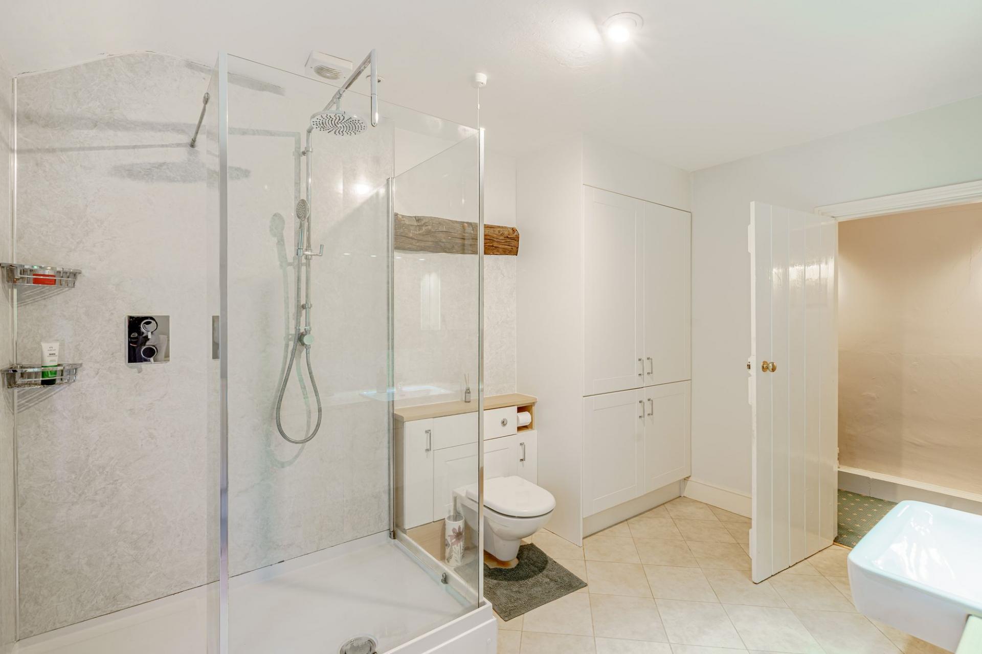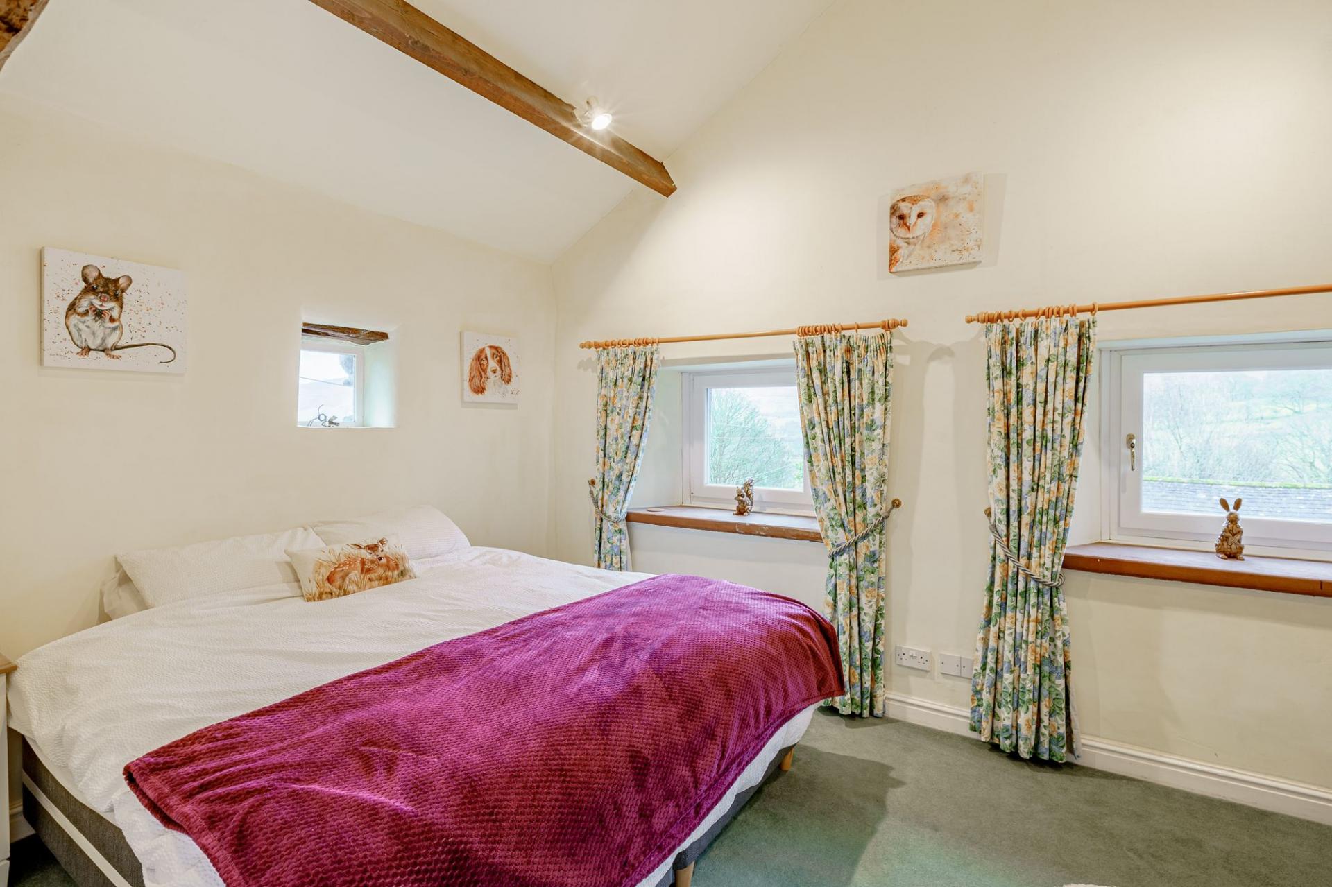 Upstairs in the barn there are two very generous double bedrooms, one with a feature arch window offering a view of the front gardens and the start of the path leading up Low Fell. The second bedroom has views out over the fells and the neighbouring farmyard. A generous bathroom with walk in shower serves the two bedrooms.