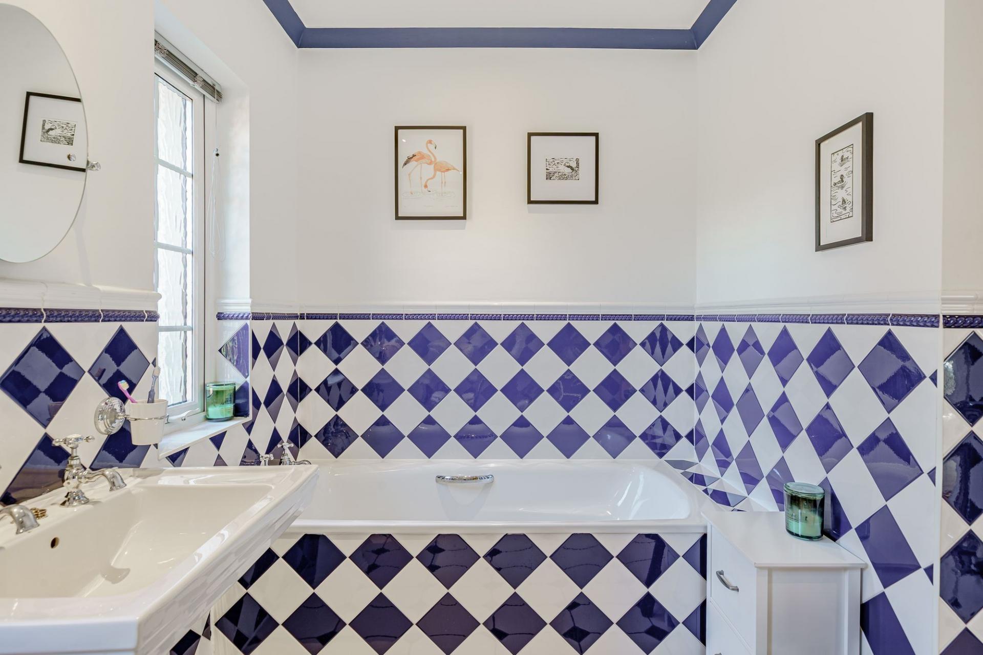 To the left of the main entrance hall are two ground floor bedrooms and a striking and generous bathroom with separate bath, shower WC and sink. There are two further reception rooms, one currently used as a study, the other a snug. From the study is the sunroom/conservatory with an attractive slate floor and wonderful views onto the garden.