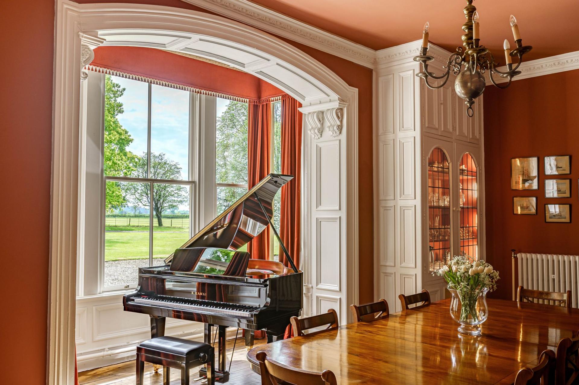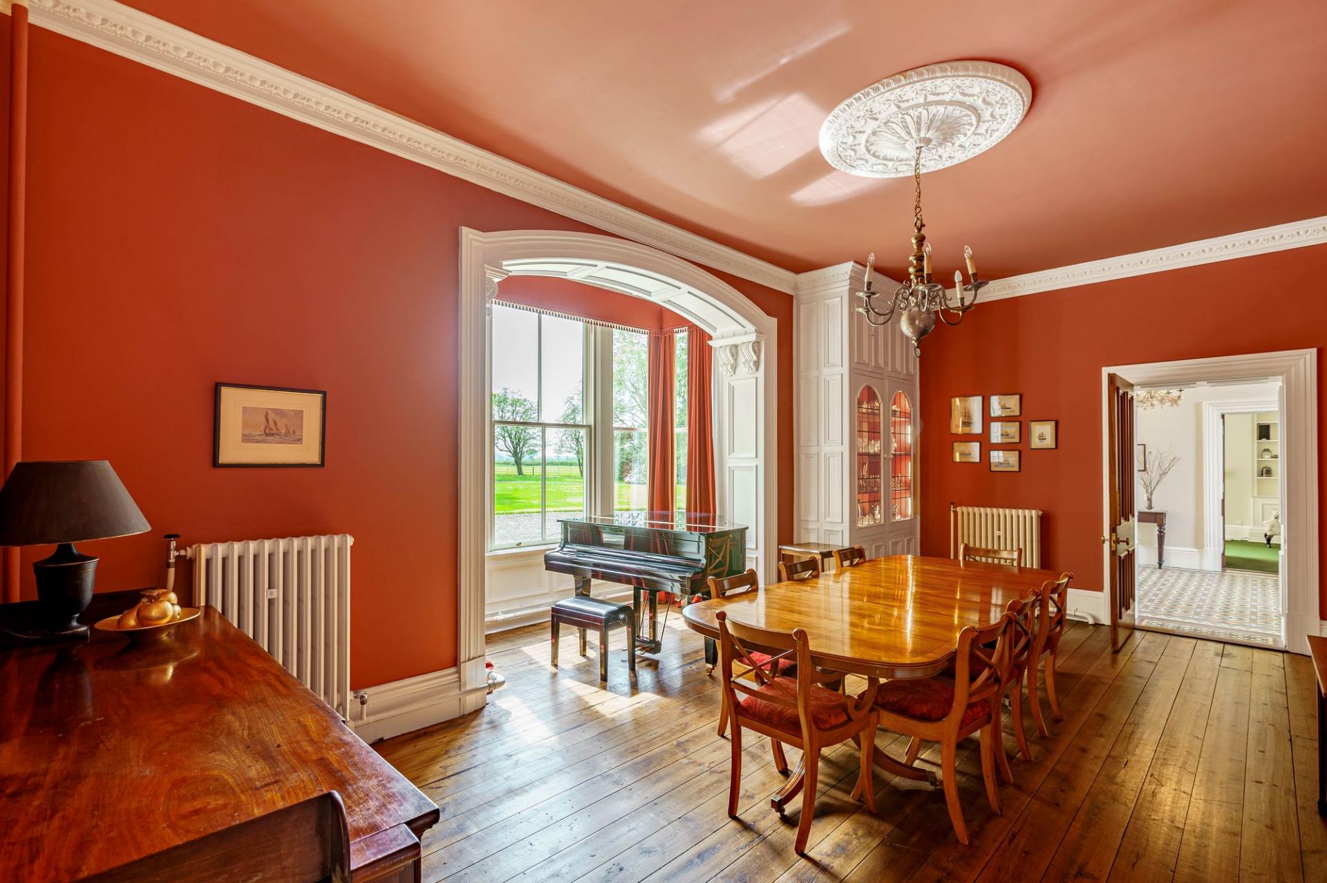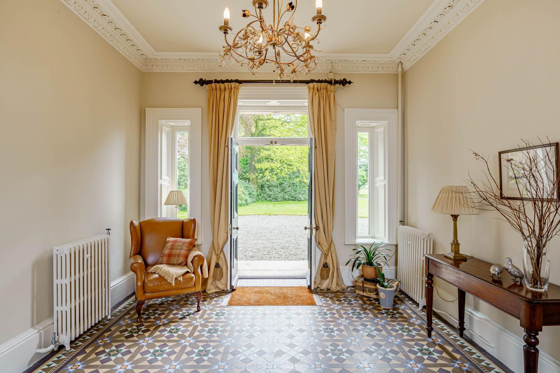 The front entrance leads directly on to a grand and elegant reception hall with period staircase, radiators and original Victorian tiled floor leading to the half landing and stained-glass window. From the hall are three main reception rooms. The drawing room is tastefully decorated, sizeable with a generous bay window looking onto the front lawn with quality ornate mouldings and period features including fireplace and Jotul wood burner. There is a generous and elegant formal dining room with a second bay window and original built in display cabinets and solid oak floor. From the hall is an additional reception room, currently as a tv/snug and a tastefully fitted downstairs cloakroom/WC. From the grand hallway there are steps down into the cellar. The rear entrance to the property opens into the original back kitchen now a practical boot room full of delightful period features including a stone flagged floor, meat hooks and original press cupboards either side of the sandstone fireplace complete with a second Jotul wood burner.Leading from here is the utility room, also with sandstone flags,ample work surface, shelving and built in cupboards, there is plumbing for white goods and a generous Belfast sink. The kitchen is characterful, bright and spacious with oak floor and windows to both the front and rear of the property. It has a range of floor and wall mounted cupboards with mixture of Kirkstone Slate and wooden worksurfaces. There is also an integrated fridge, dishwasher and a four oven, oil fired Aga with two cooking plates and a warming plate. The kitchen opens into a bright and airy informal dining room with window onto the garden.