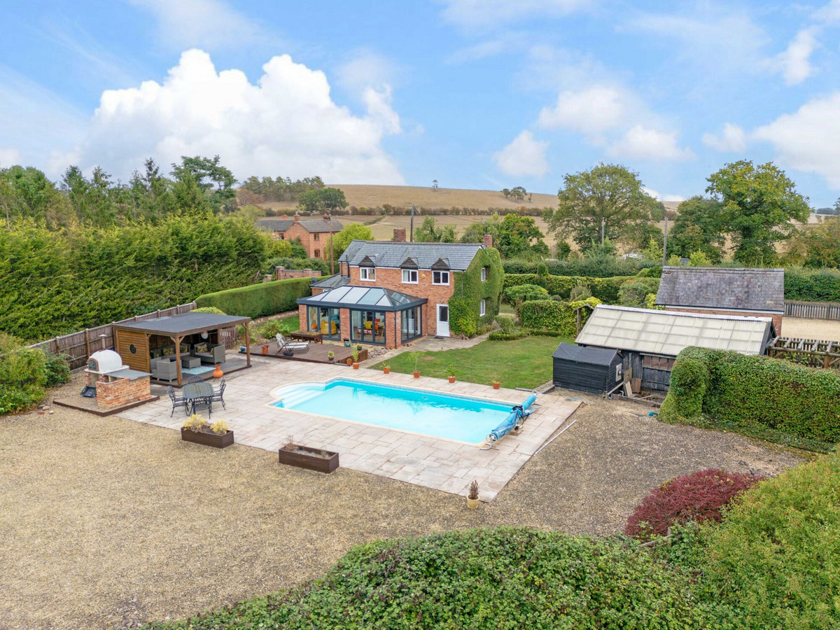 A detached, four-bedroom country home in the sought-after village of Hanbury, Bromsgrove, set in circa one acre including an orchard and swimming pool. The Cottage Woolmere Green features ample parking, rear access, a double detached garage, and a versatile detached outbuilding, currently used as a gym and games room. Inside, the property is beautifully presented and includes a spacious kitchen/diner and a contemporary garden room. This is a welcoming and versatile home in a highly desirable Worcestershire village, perfect for entertaining and everyday living.