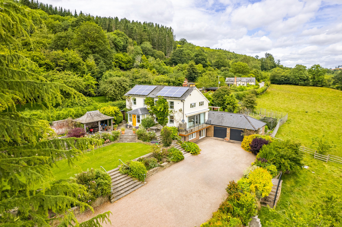 A detached, four-bedroom, countryside residence, set within approximately 6.5 acres of land in an elevated position in Checkley, Herefordshire. Broomy Green House is beautifully presented, enjoys outstanding countryside views and includes a double garage, a spacious office on the lower ground floor, stabling and a storage barn.
