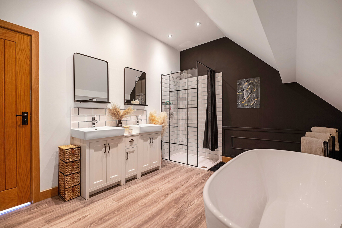 Cattespool Mill, a Grade II Listed Curtilage, detached, barn conversion originally built in the 1800s, offers approximately 5,800 sq ft of versatile, character-filled accommodation. Set within around 5 acres of stunning countryside, this remarkable property features five generous double bedrooms, two bathrooms, two shower rooms and three spacious reception rooms, all designed to embrace the surrounding far-reaching views. The property benefits from a secure, gated courtyard driveway providing ample off-road parking and double garaging. Additional features include five well-proportioned renovated stables with an adjoining tack room, a store, a double garage, and a workshop - with over 3,500 sq ft of outbuildings overall - making it ideal for equestrian enthusiasts. Nestled in the sought-after semi-rural area of Tardebigge, Cattespool Mill combines historic charm with modern convenience, offering a truly unique lifestyle opportunity.