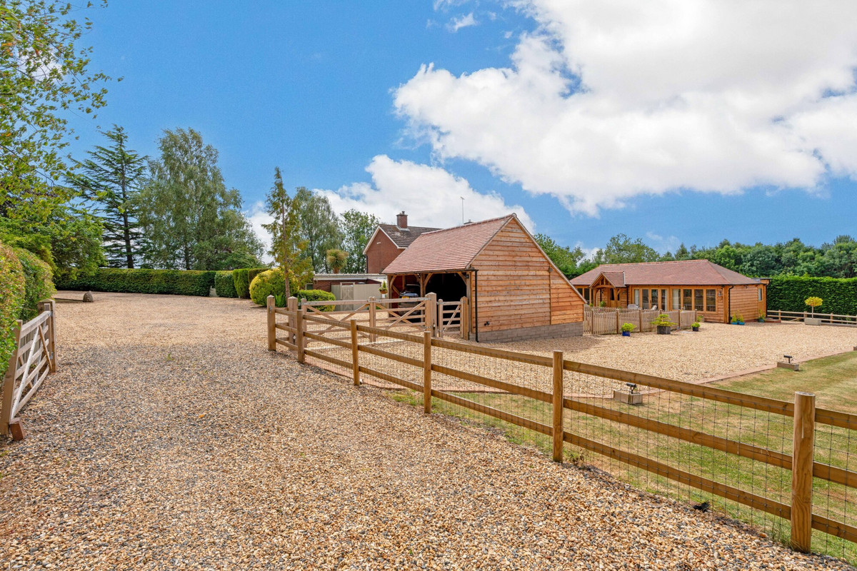 - Electric gated entrance with parking for 5+ vehicles and timber-framed carport