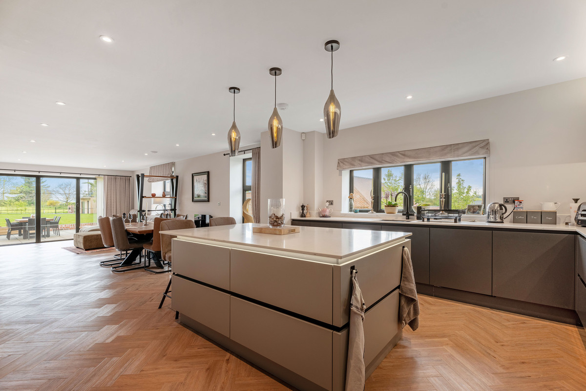 The house boasts large bright open rooms especially the 40 foot long open plan kitchen living area at the heart making it the centre of family life.