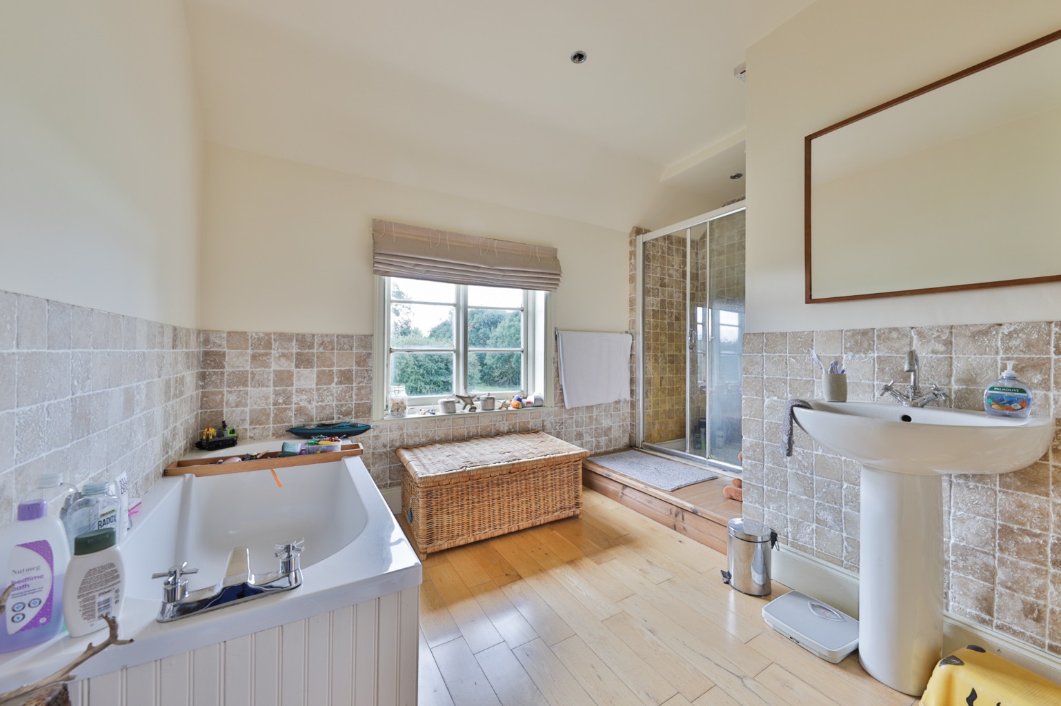 Family Bathroom Includes a four piece suite comprising panelled bath, shower cubicle, pedestal wash hand basin and low level w.c. with complementing tiling.