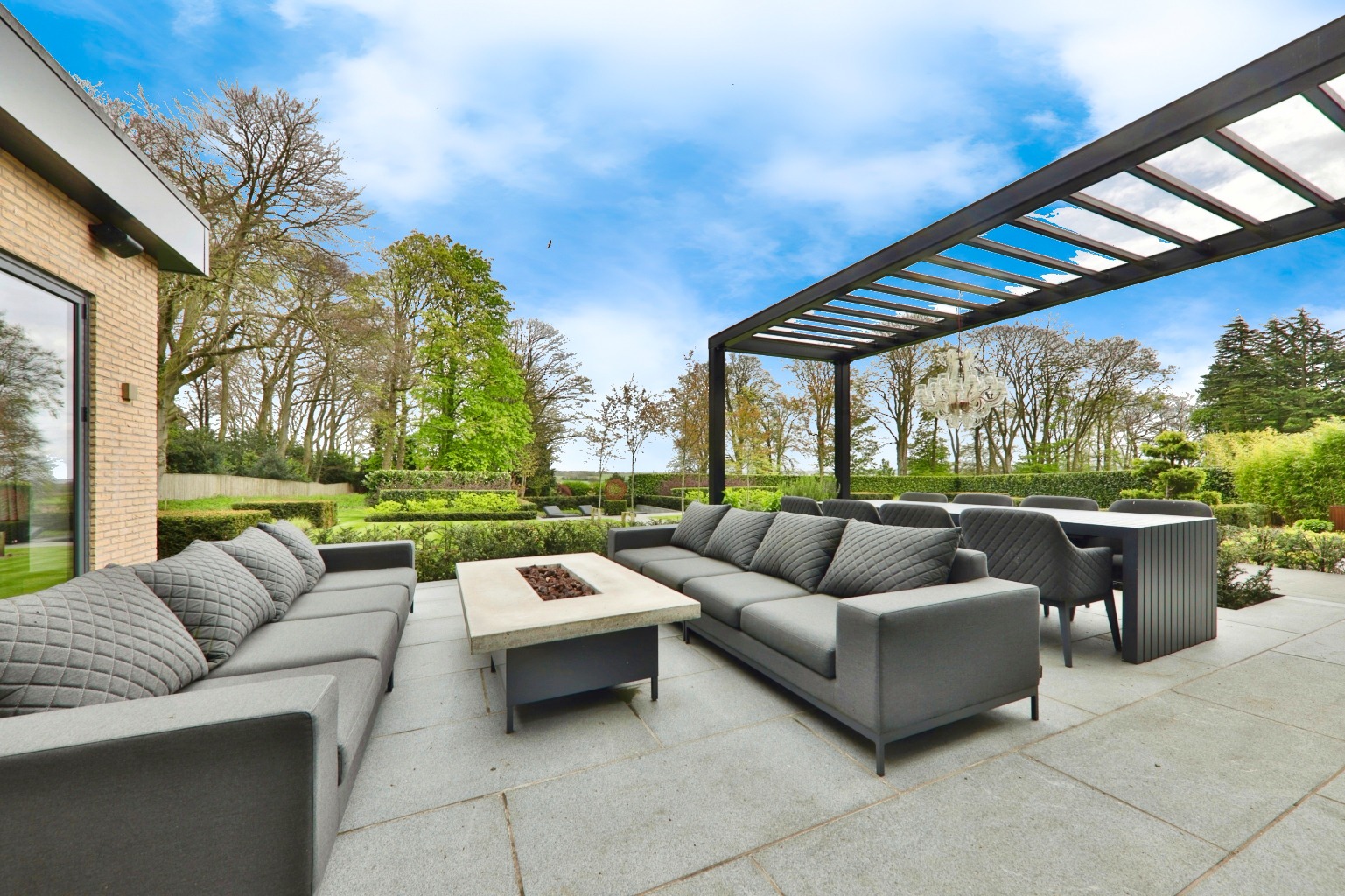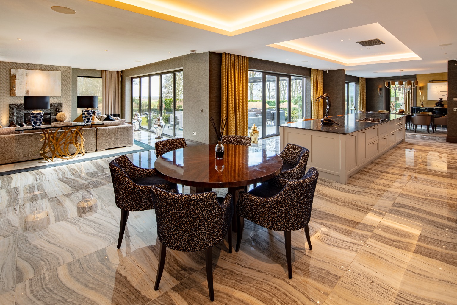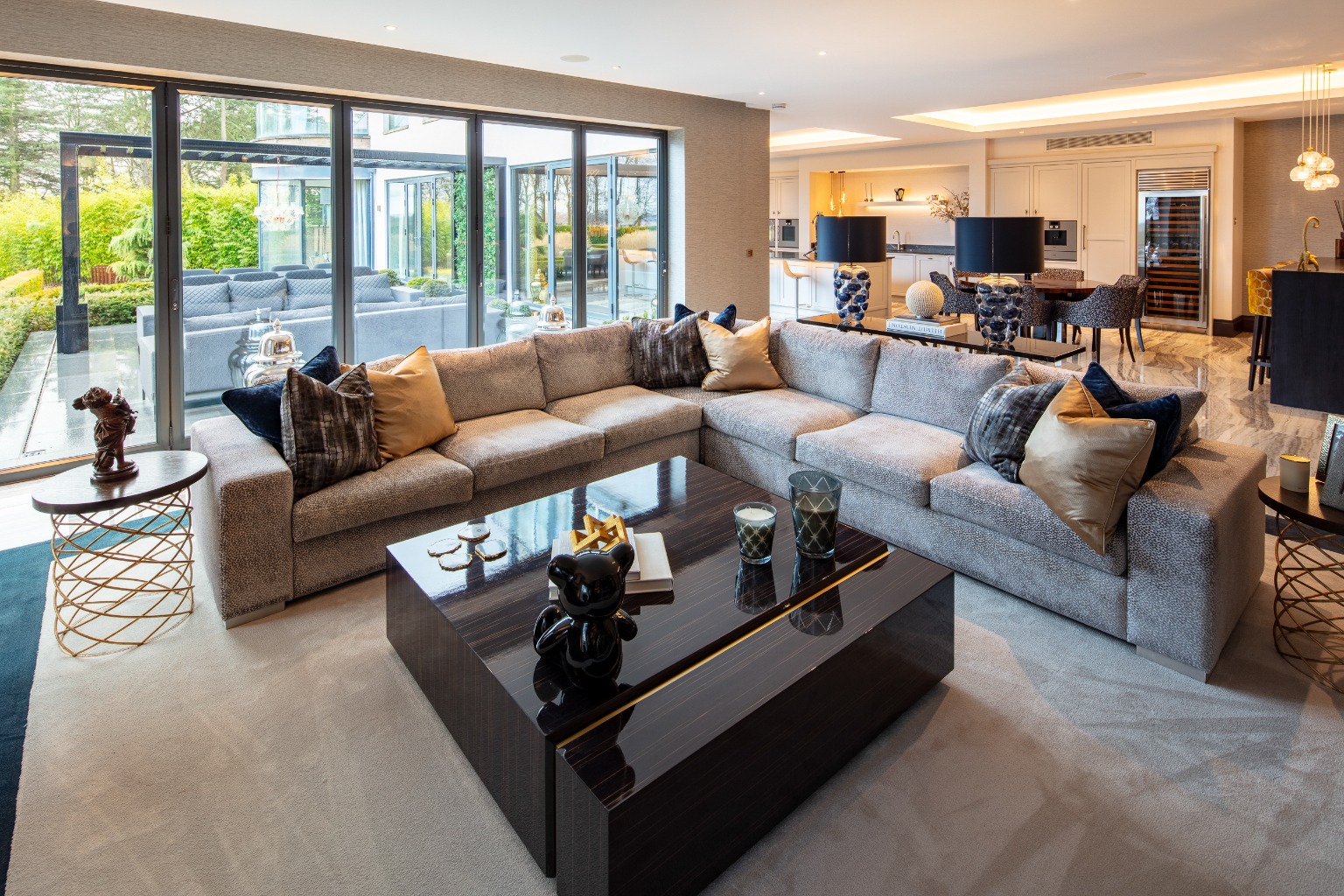 - Open-plan dining area, high-spec kitchen, and living area with bi-fold doors