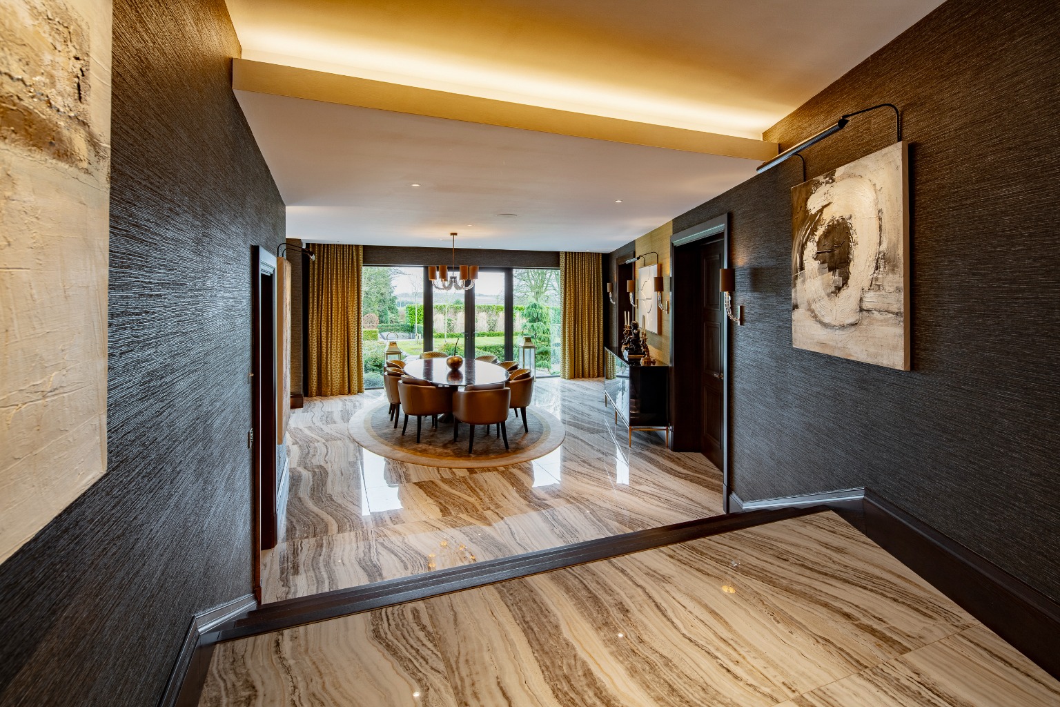 Situated on Swanland Hill, this home offers an exceptional vantage point with sweeping views of the Humber Bridge and the estuary beyond. The property itself is the epitome of luxury, with a sprawling 6,600 square feet of interior space, designed with meticulous attention to detail. The integrated entertainment systems and sophisticated mood lighting enhance both daytime and night-time settings, creating a versatile and enjoyable living environment.