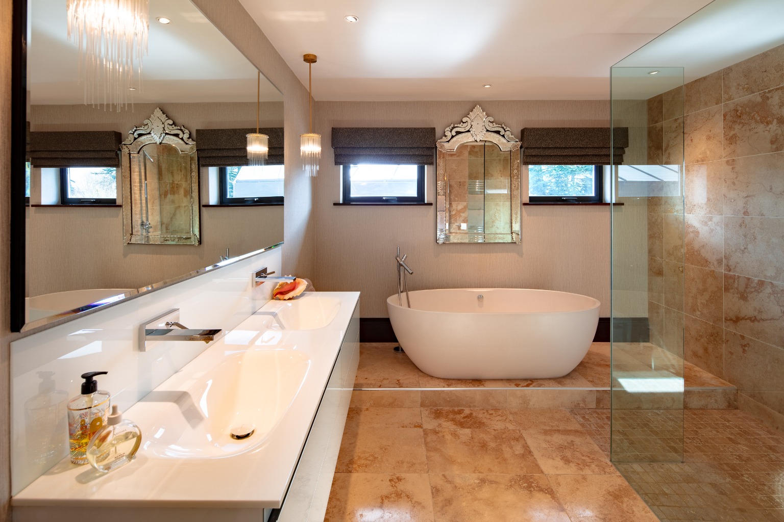- Master suite with balcony, three additional en-suite bedrooms