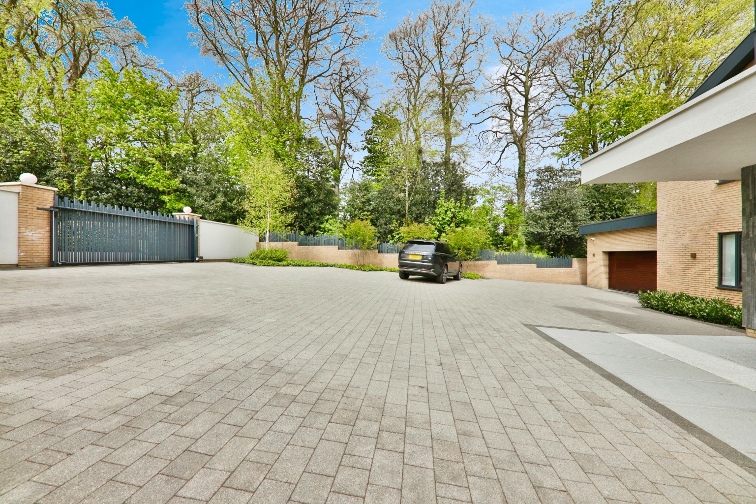 - Spacious parking area with electric gates.