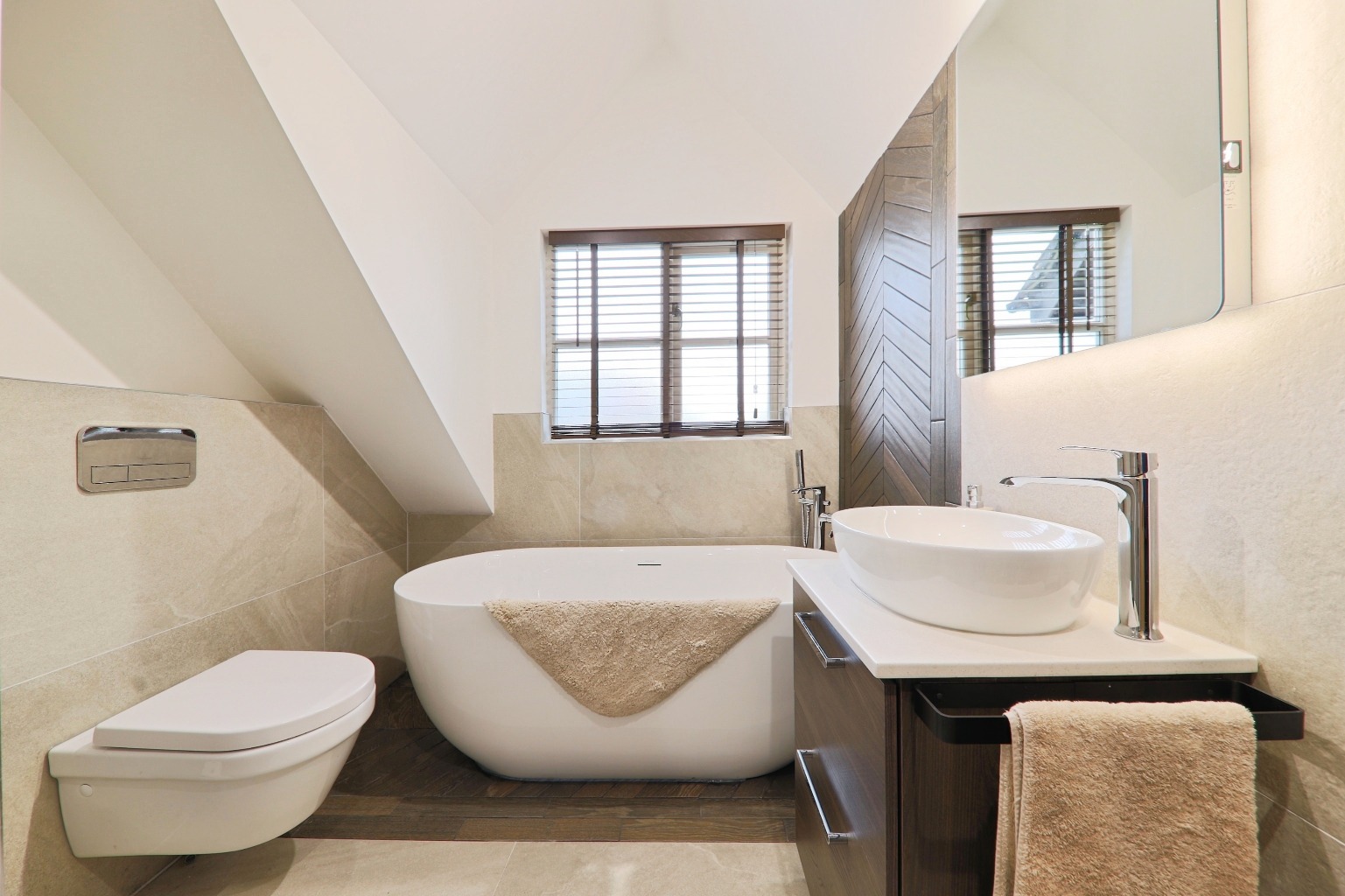 Upstairs, the master bedroom really stands out. It has two sets of French doors that open onto a balcony facing west, so you can sit and watch the sun go down over the water. There’s a large walk-in dressing room and a luxury en-suite bathroom. The three further double bedrooms are well-proportioned, and there are two more bathrooms to make sure everyone has their own space.