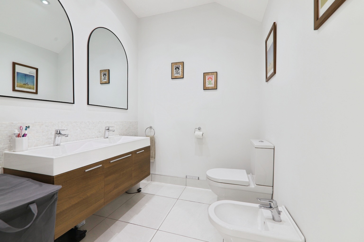 Upstairs, the master suite stands out with its private south-facing balcony. A guest suite with en-suite bathroom and dressing room offers comfort for visitors, while two additional double bedrooms and a family bathroom complete the first floor.