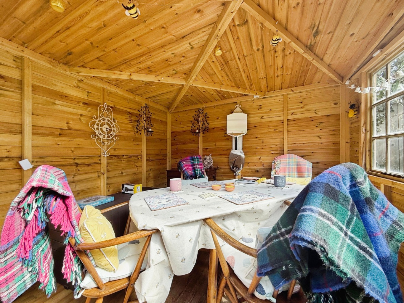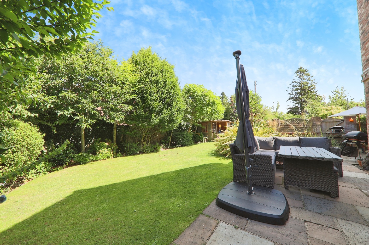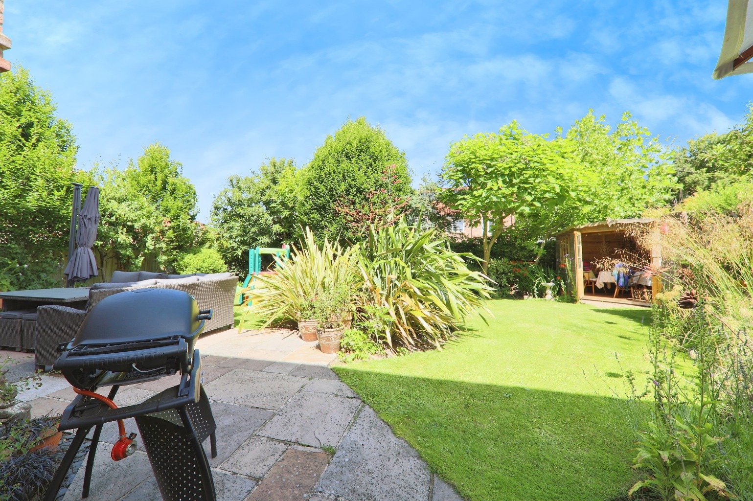 Outside, the garden is well organised with mature landscaping, well proportioned though very manageable. Outside entertaining and dining is well accommodated with space for reclining, dining and barbecuing, and if the sun is too bright, a chill in the air or a rain shower the summer house is an ideal addition to the outside leisure space. There’s a good mix of patio, lawns, planting with the bonus of discreet tool shed and bicycle store hidden away so as not to spoil the social and leisure space afforded by the well organised setting.