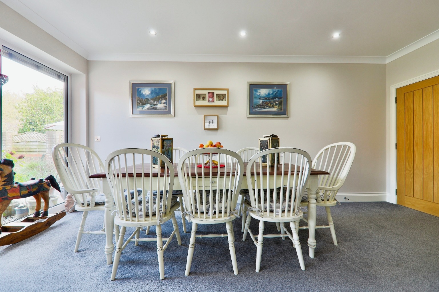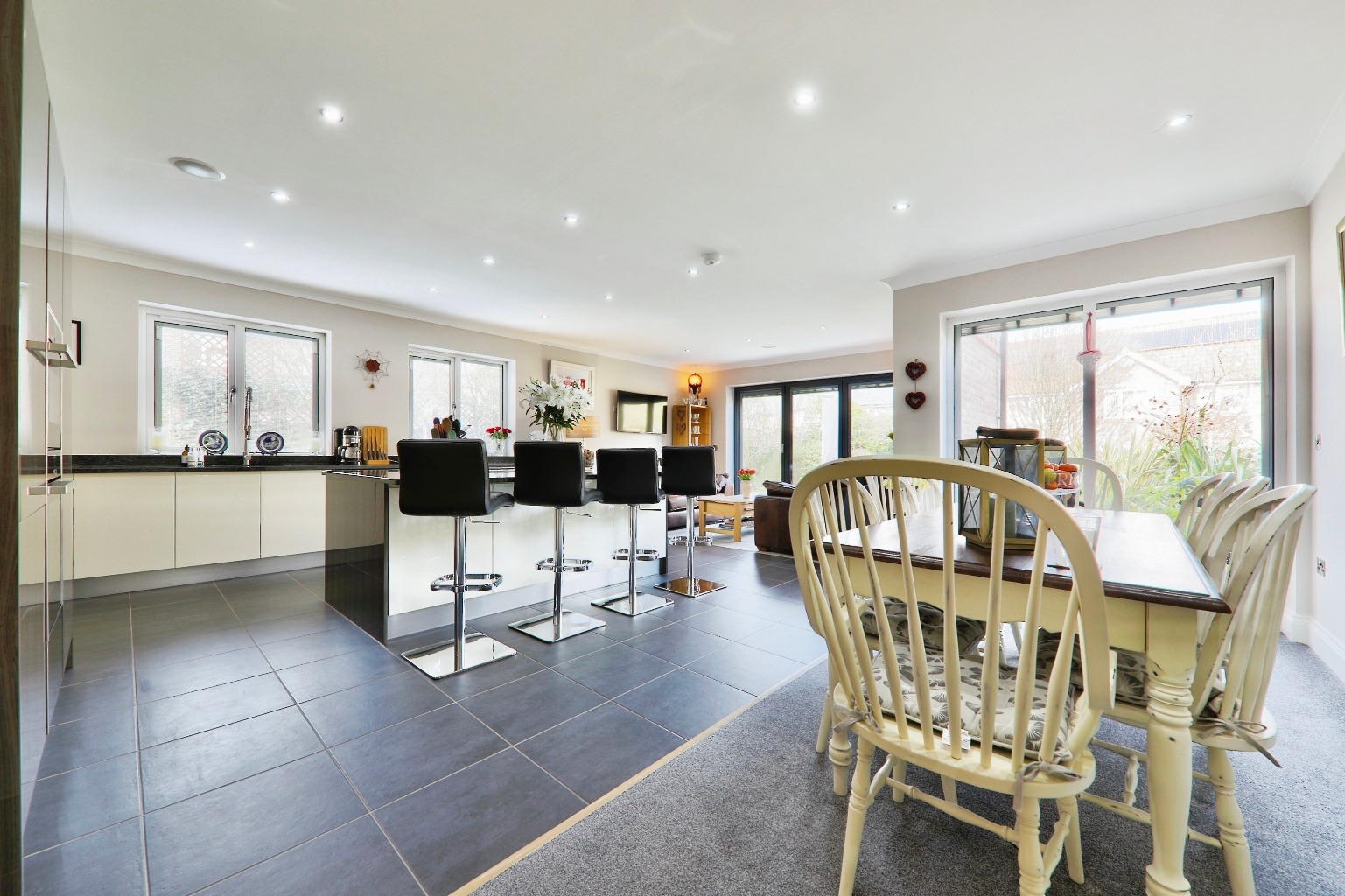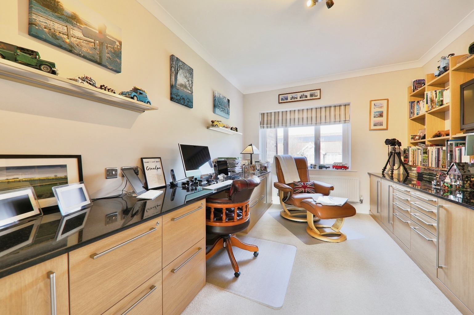 The kitchen really is the heart of this home. It’s been designed with modern living in mind – open-plan, high-end appliances (Neff and Fisher Paykel), and a space that flows straight into the dining and living area. The bi-fold doors open right out to the rear garden, so in the warmer months you can bring the outside in and enjoy meals or drinks outdoors with ease.Off the kitchen, there’s a handy utility room and a boot room that links directly to the garage – really useful for those muddy dog walks or when you’ve got your hands full after the weekly shop. There’s a downstairs loo and good storage, making the whole layout feel practical as well as stylish.Upstairs, the main bedroom is a great size with space for furniture and a quiet corner to unwind. The en-suite is sleek and modern, and the walk-in wardrobe area keeps everything neat and tucked away. The other three bedrooms are all proper doubles, so no one gets the short straw. One of which is a fully fitted study with comprehensive storage and granite worktops, ideal for working from home or as a gaming room for older children or a sanctuary in which to read or simply pass the time pursuing crafts and hobbies.