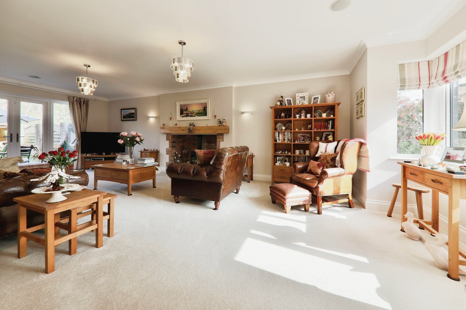 Off the hallway, you’ll find a large through lounge with plenty of space for relaxing, watching TV or hosting friends and family. The room runs from front to back with a large bay at the front and French doors opening to the patio at the rear so there’s abundant natural light throughout the day.
