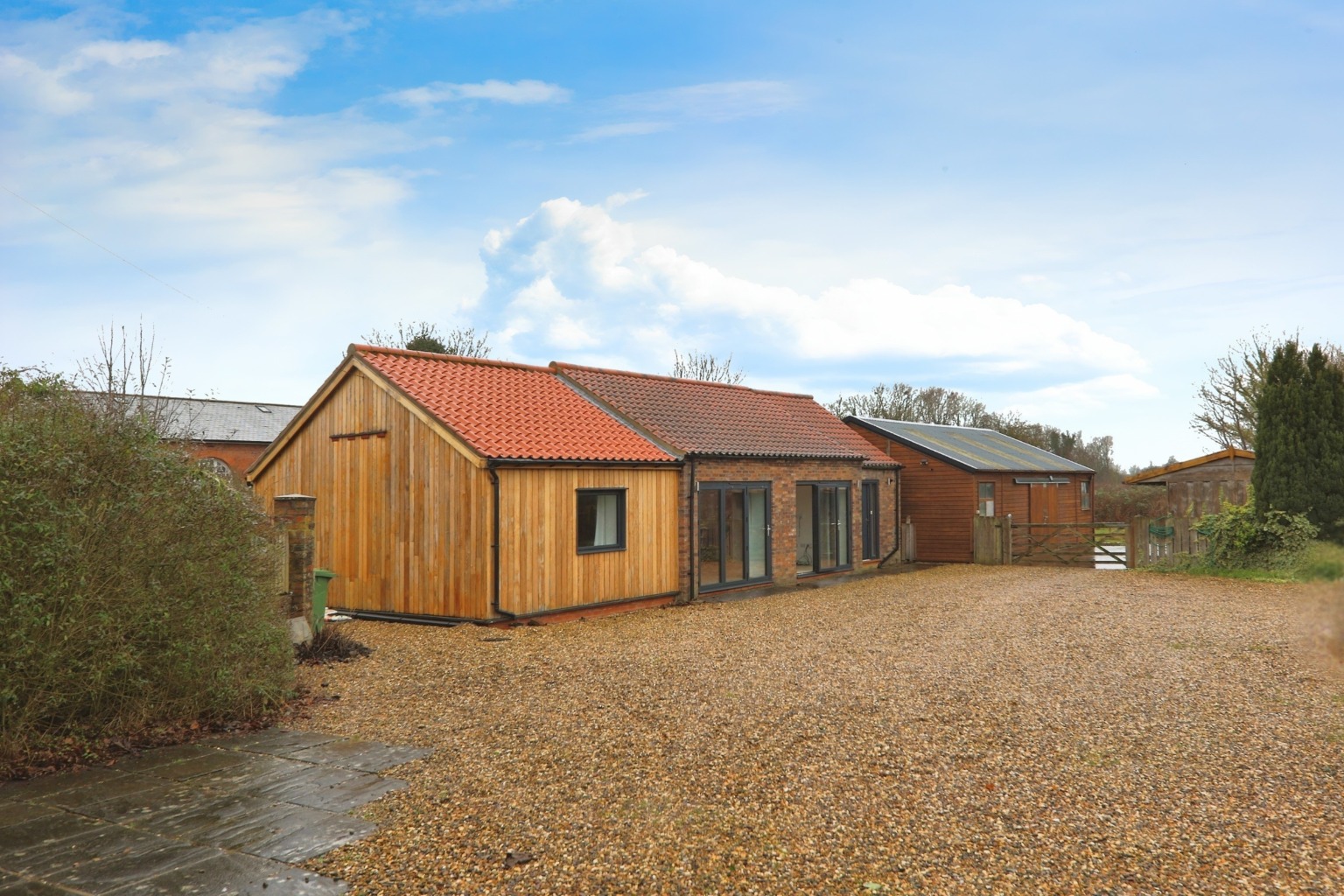 - Annexe: Approx. 840 sq ft, modern two-bedroom layout with bi-fold doors and open-plan living