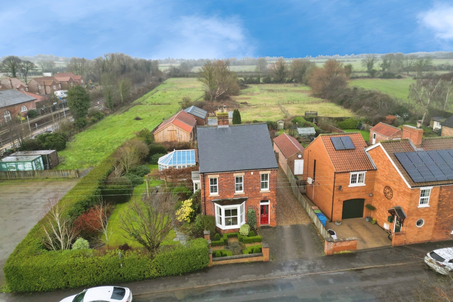 This late Victorian property offers a unique opportunity for multi-generational living, combining period charm with modern amenities. The main residence spans approximately 2,500 sq ft, featuring four bedrooms, four reception rooms, and two bathrooms, while the detached annexe provides an additional 840 sq ft of living space. With stables, paddocks, and a wildlife pond, it’s perfectly situated in the desirable village of Cranswick, close to Beverley and Driffield.