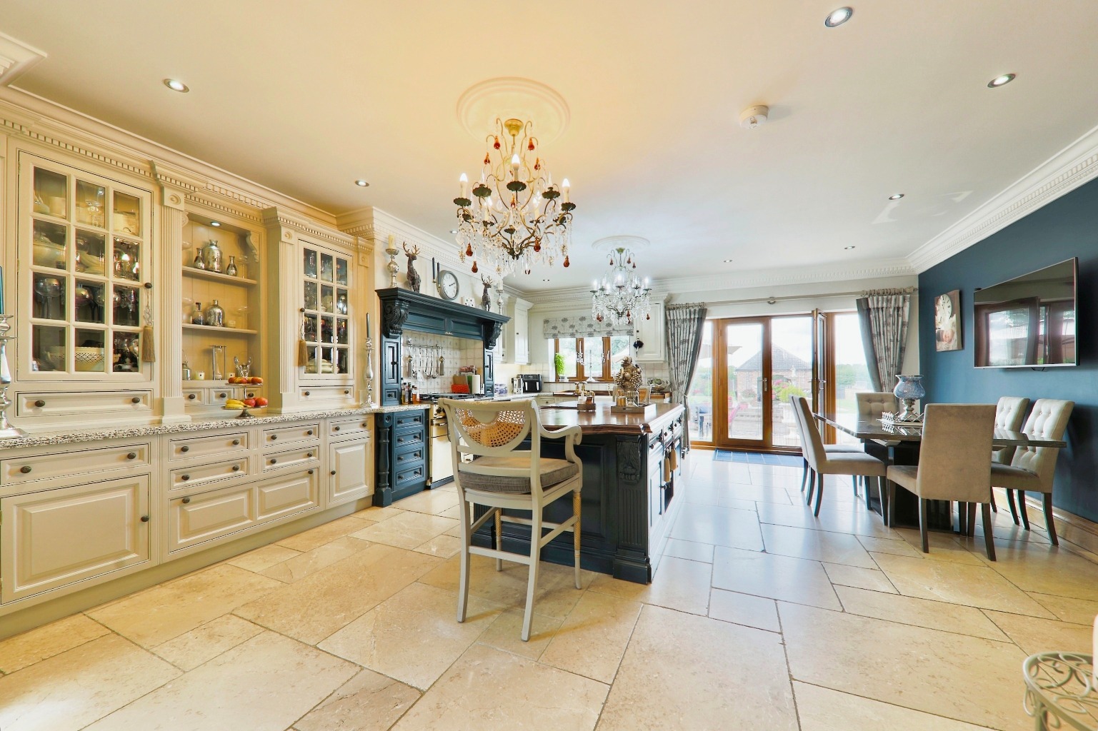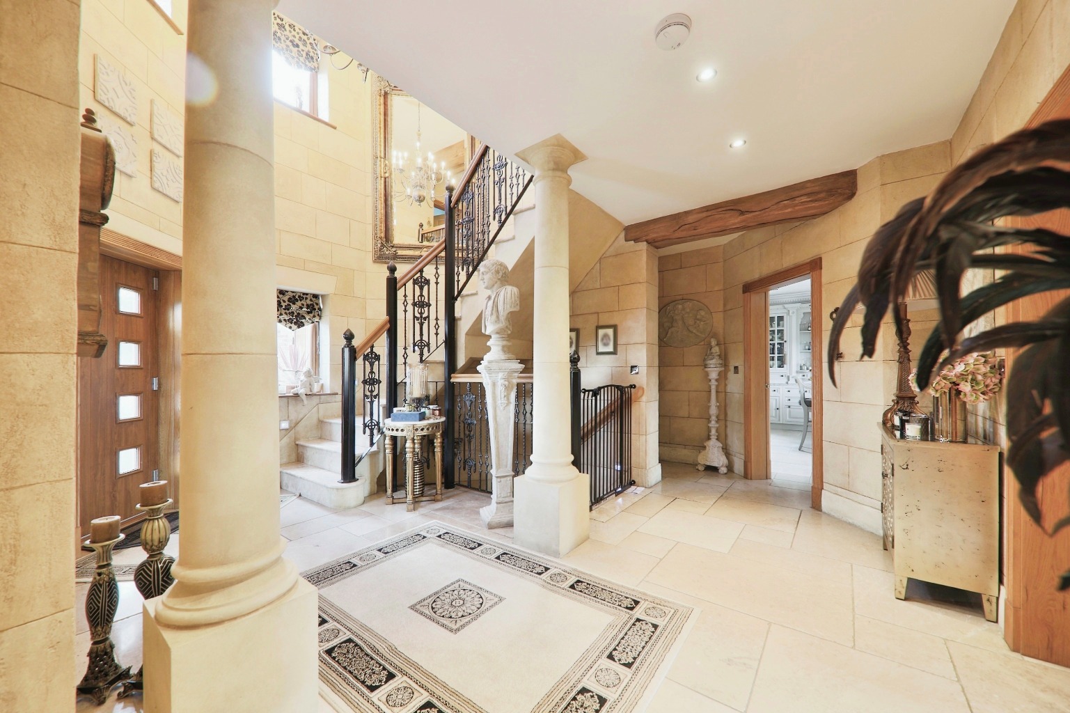 Inside, the home features an expansive open plan dining kitchen designed by Clive Christian, offering a stylish and functional space for cooking and socialising. The living room and sitting room provide ample space for relaxation and entertaining, each finished to a high standard. The property also includes a stunning galleried entrance, complete with a solid marble staircase that makes a striking first impression.