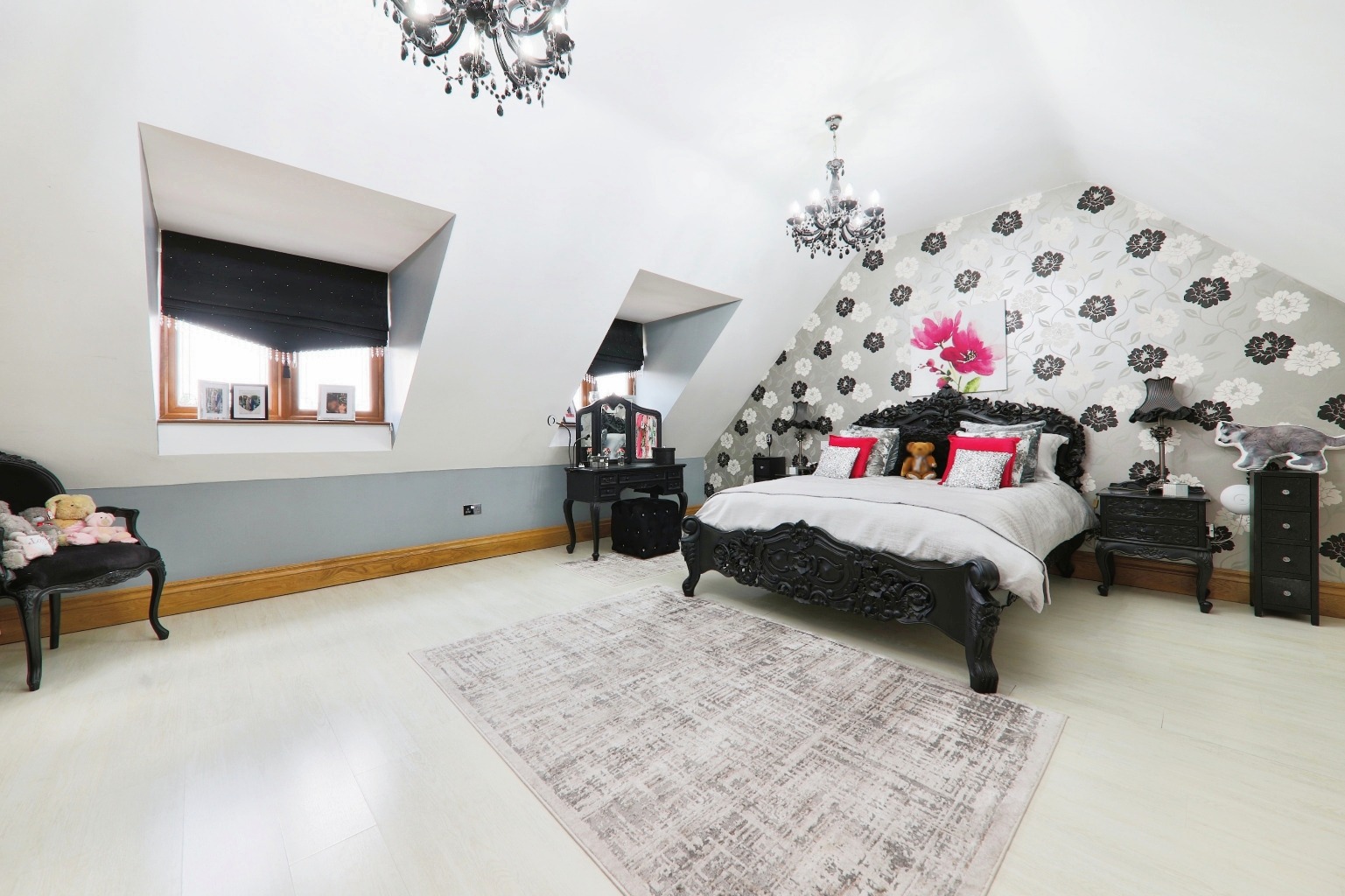 The accommodation comprises five generously sized bedrooms, each offering comfort and privacy. The master bedroom suite is particularly impressive, providing a luxurious retreat with its spacious layout and high-end finishes. Each of the five bathrooms is beautifully appointed, enhancing the home's overall sense of luxury.