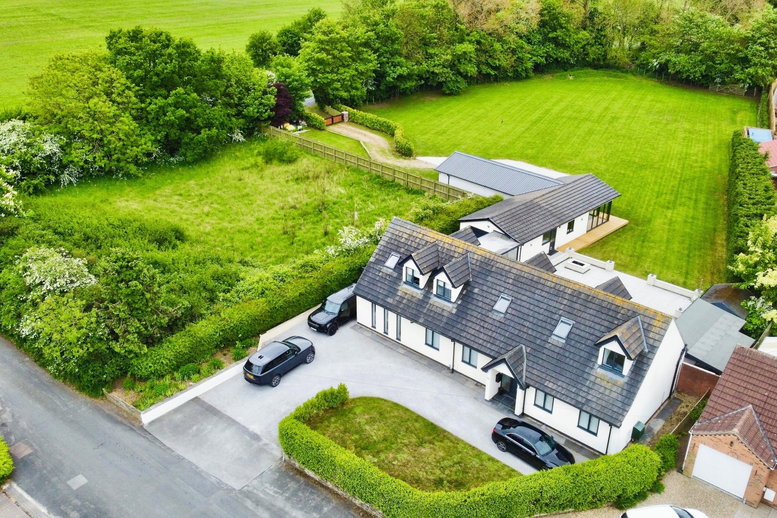 - Garaging for four cars plus space for motorhomes