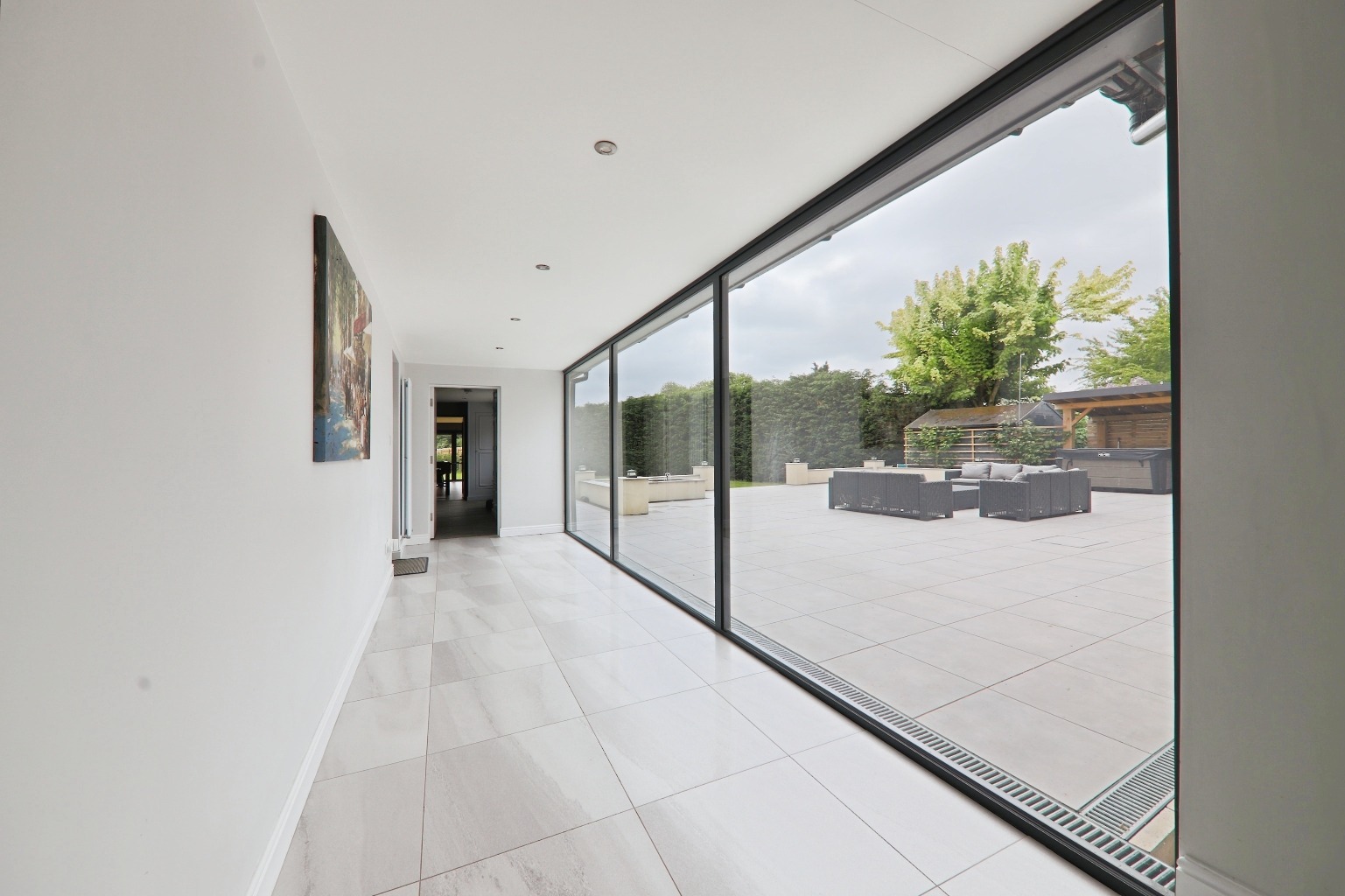 The kitchen, dining and living area is a real highlight. At 35ft long and finished to a very high standard, it’s a space that feels open and welcoming, with bi-fold doors that lead straight out onto the terrace. It’s a great setup for those who like to entertain, and the outdoor space is large enough to enjoy properly, whether that’s with family barbecues or just relaxing in the fresh air.