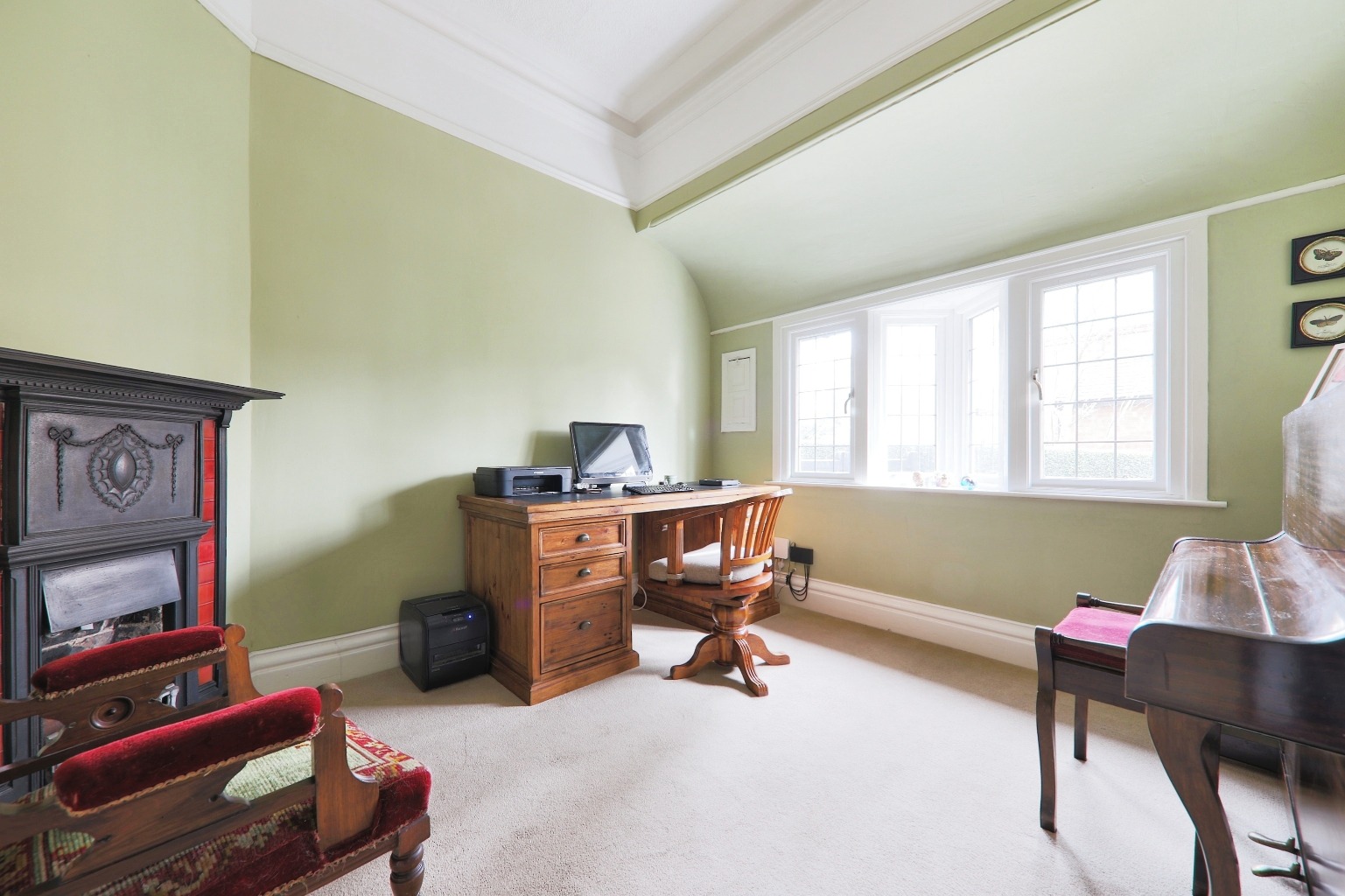 Upstairs, the five double bedrooms provide generous space, each with its own unique character. The master suite is particularly special, featuring an en-suite dressing room that adds a touch of luxury. Two family bathrooms ensure that there’s plenty of space for a busy household.